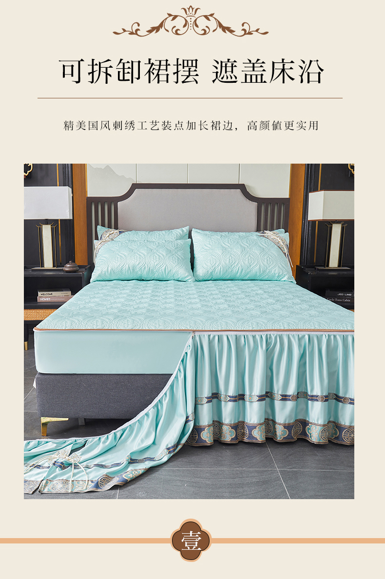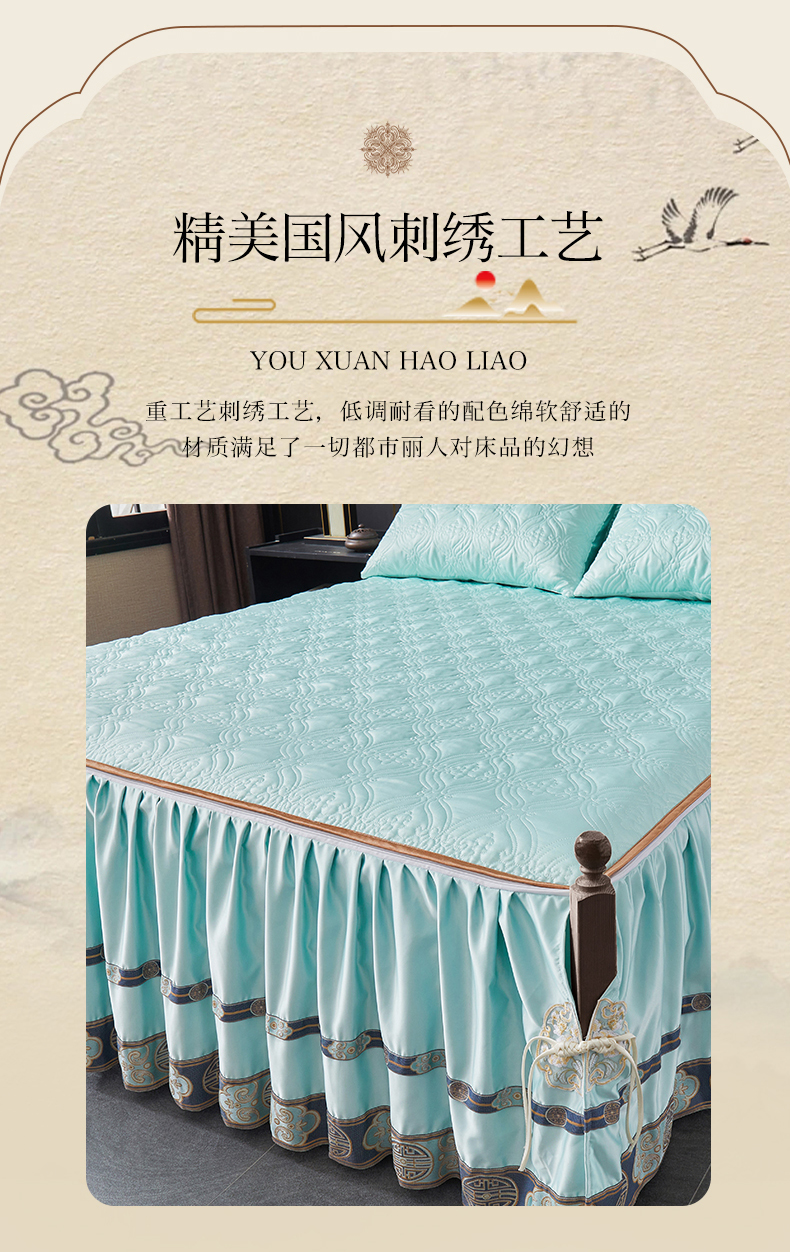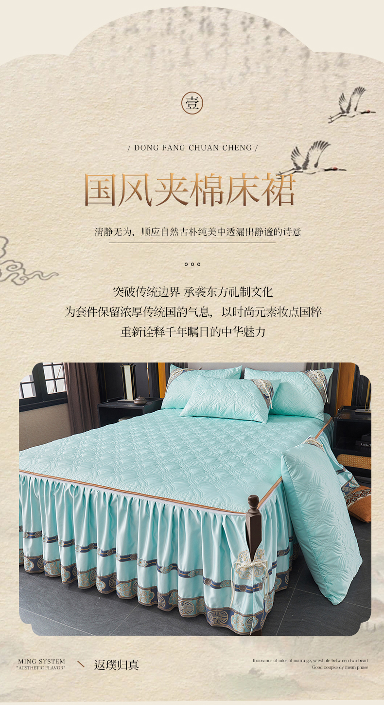 (总)罗艺轩 2024新款贡缎夹棉中国风新中式系列床裙三件套,中国风-薄荷色,中国风-宝石蓝,中国风-宫粉,中国风-迷雾灰,中国风-茉莉紫,中国风-香槟
