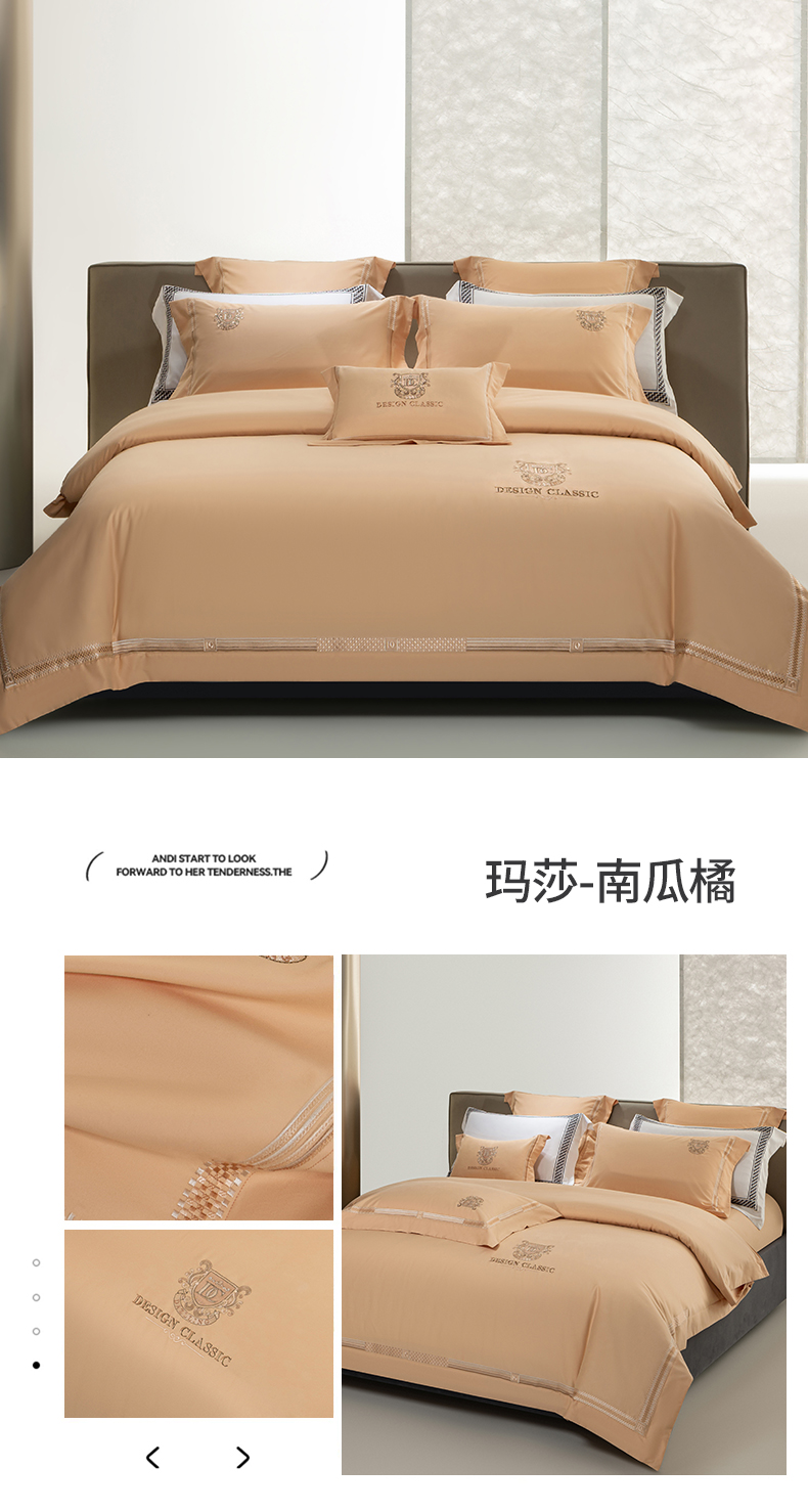 高大尚婚庆馆 2025新款长绒棉磨毛高端绣花四件套 玛莎 南瓜橘