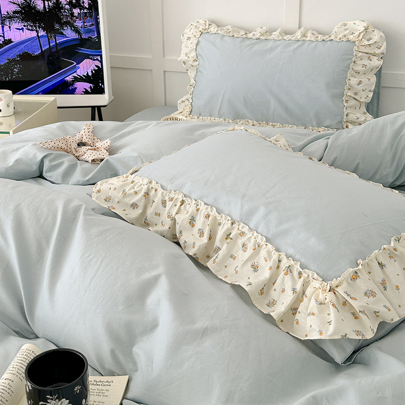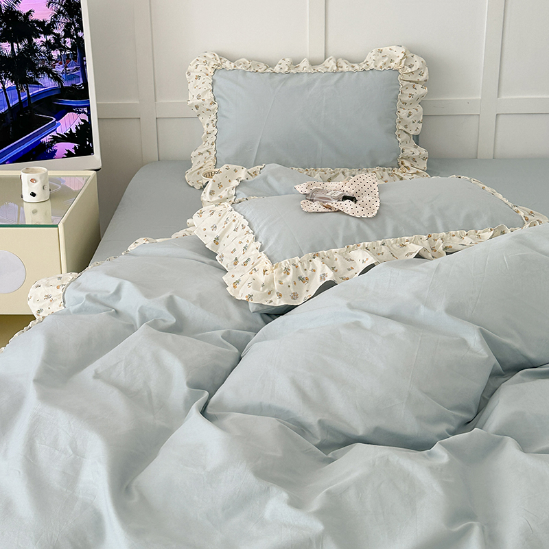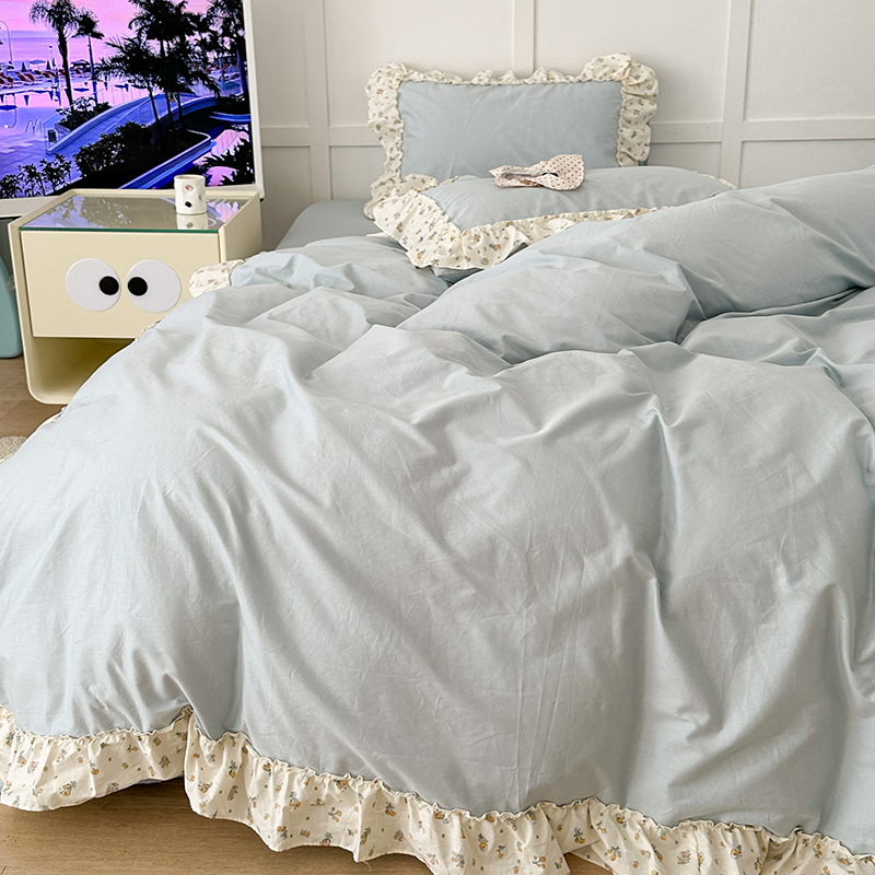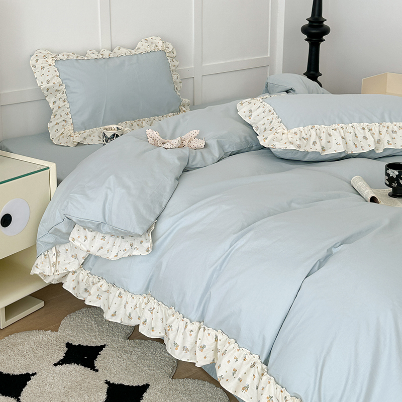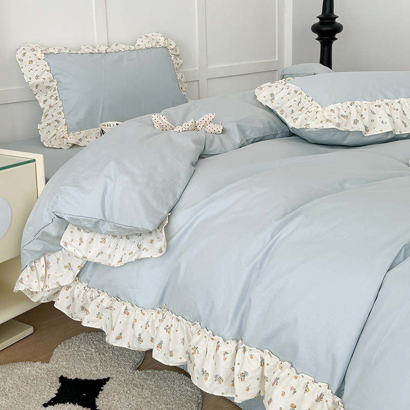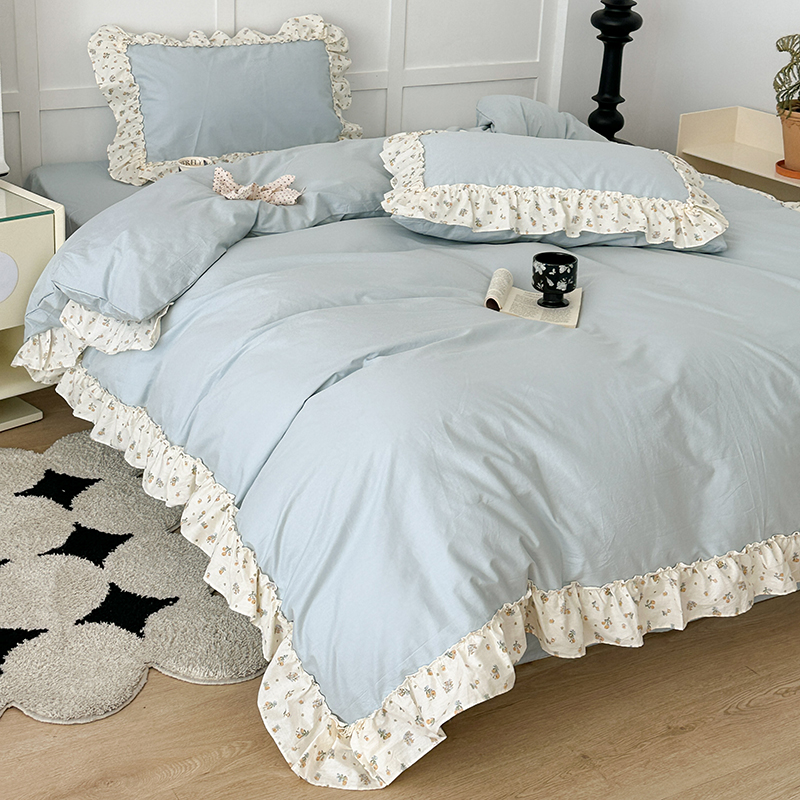 商品名称:昔可家纺 2024新款纯色碎花花边全棉小清新四件套 琉璃幽兰