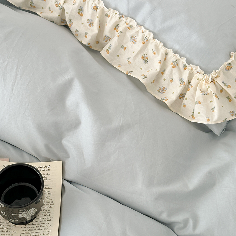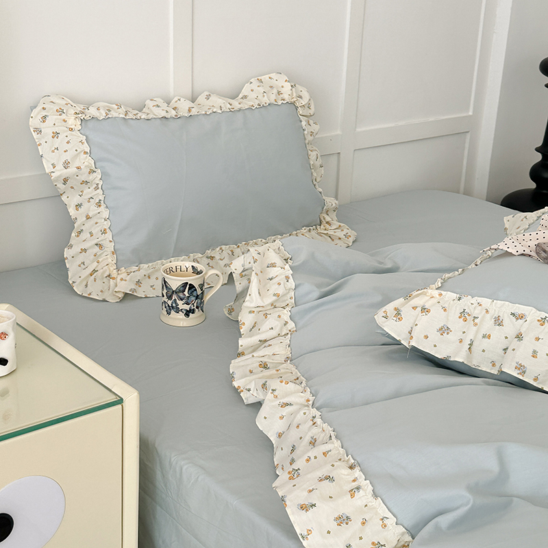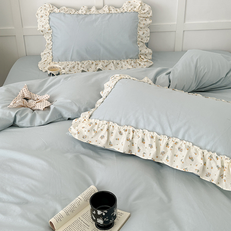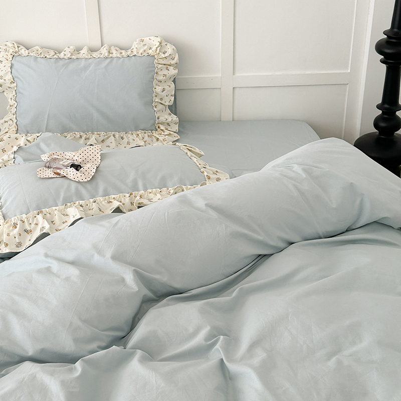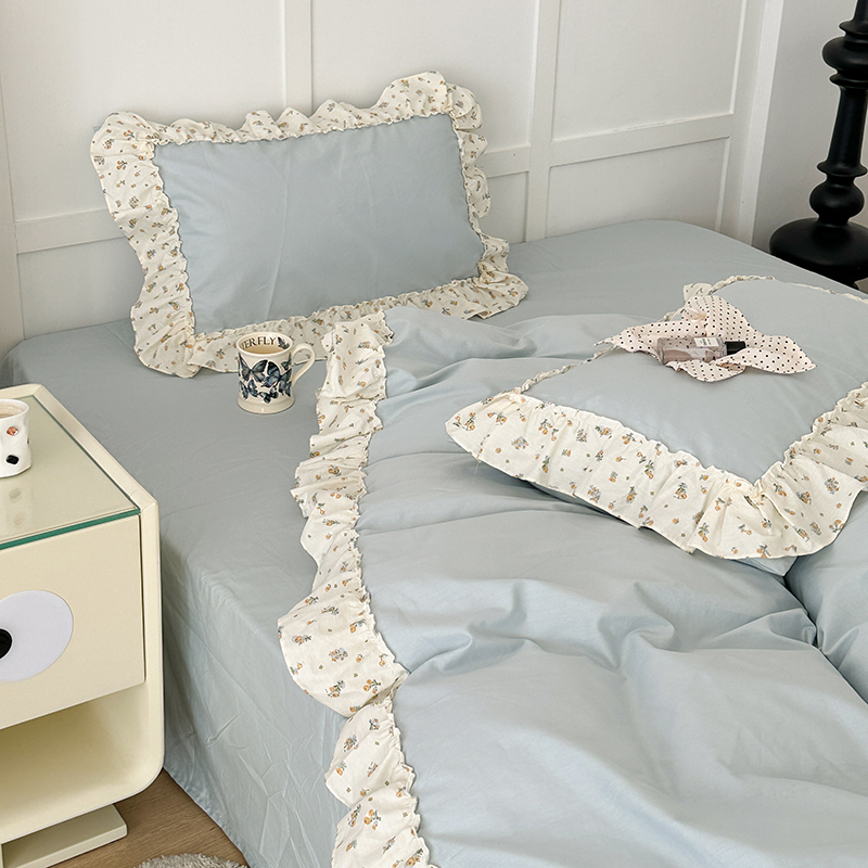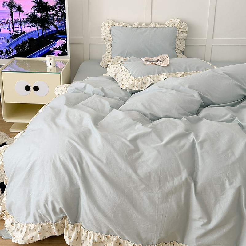 商品名称:昔可家纺 2024新款纯色碎花花边全棉小清新四件套 琉璃幽兰