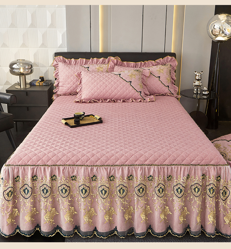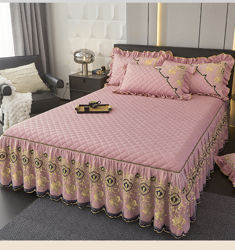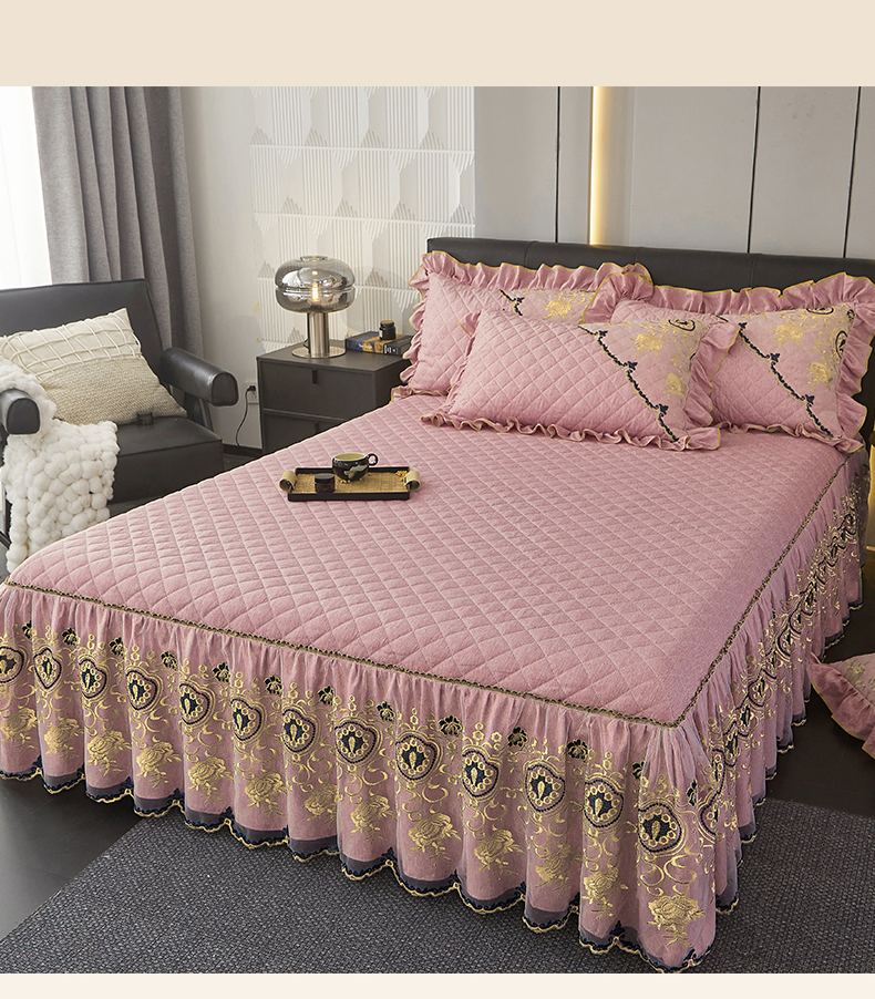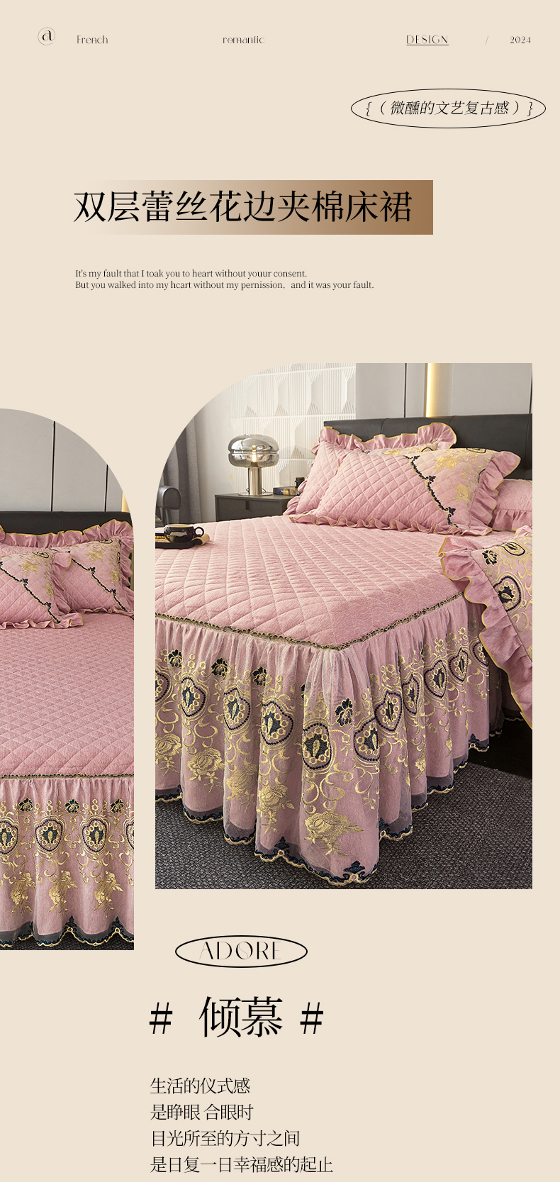 罗艺轩 2024新款色织蕾丝夹棉床裙三件套-皇家贵族 皇家贵族-香妃粉