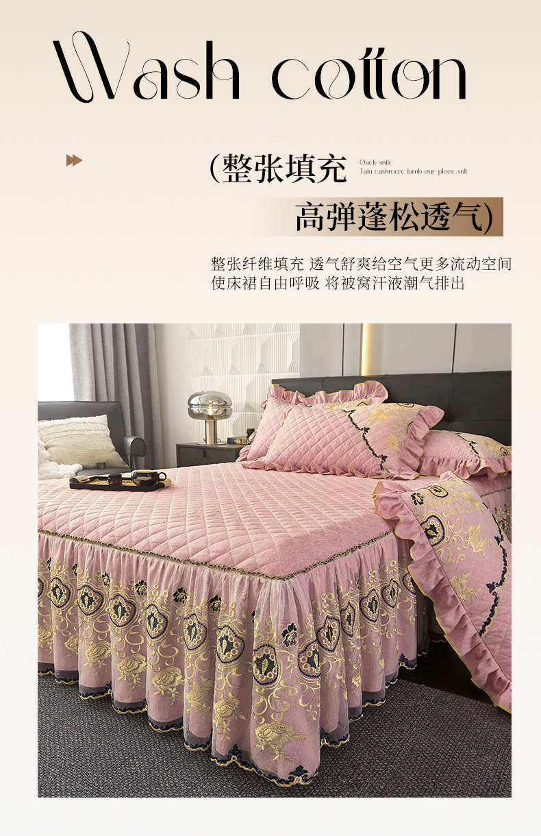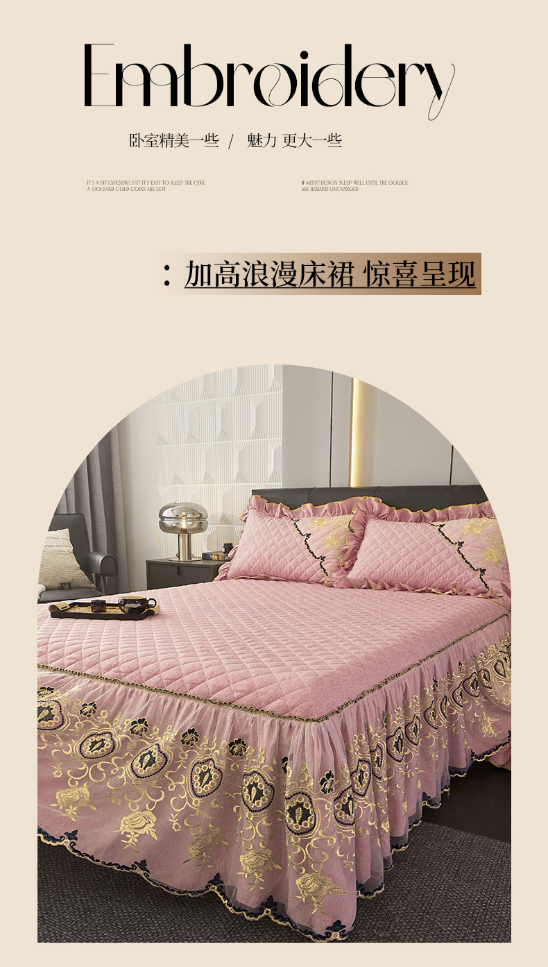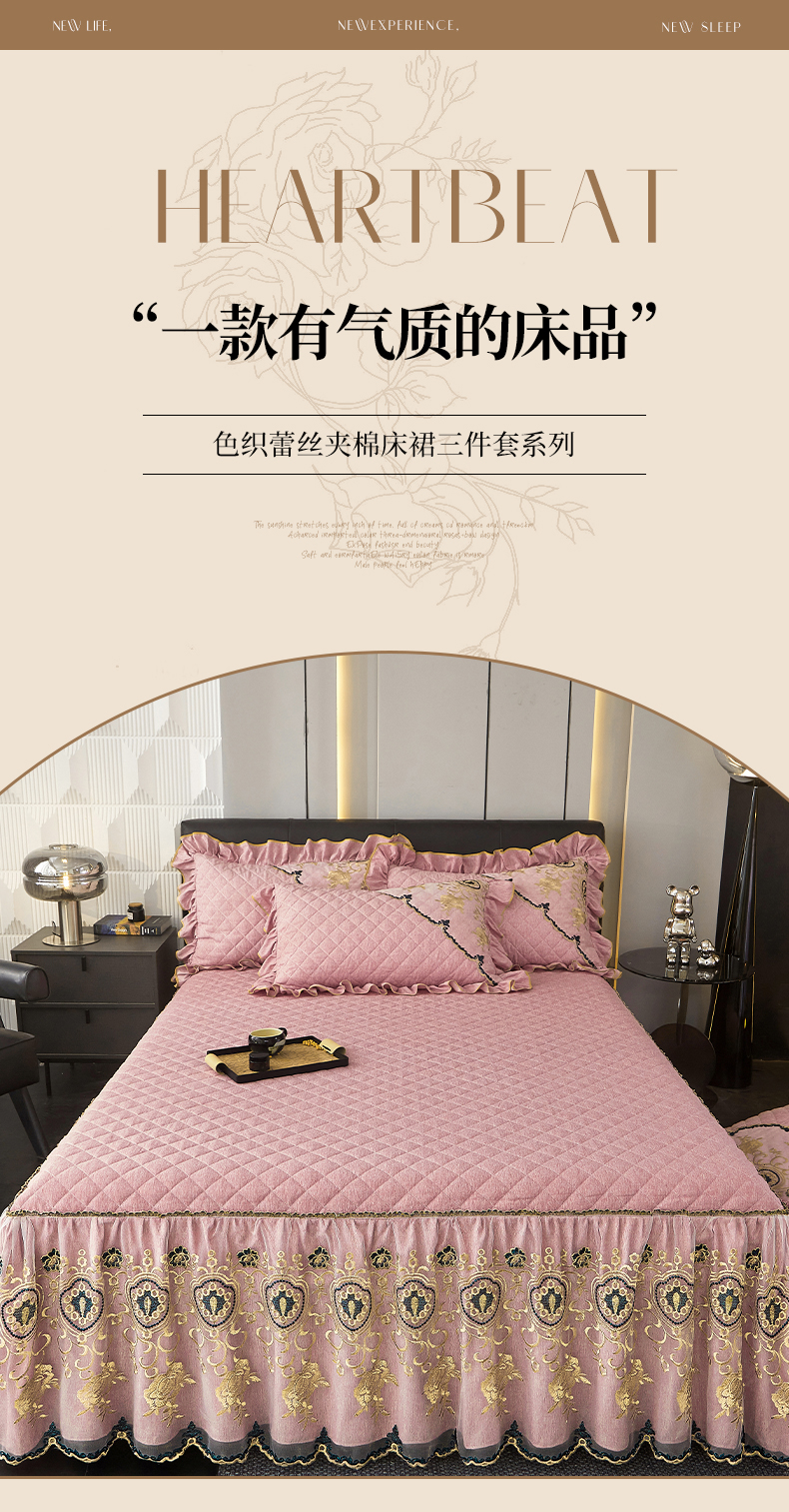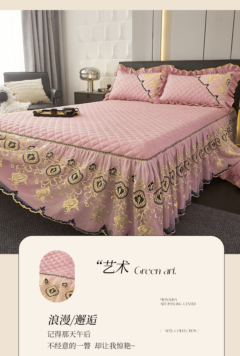 • 91家纺网 家纺一手货源 找家纺 罗艺轩 2024新款色织蕾丝夹棉床裙三件套-皇家贵族 皇家贵族-香妃粉