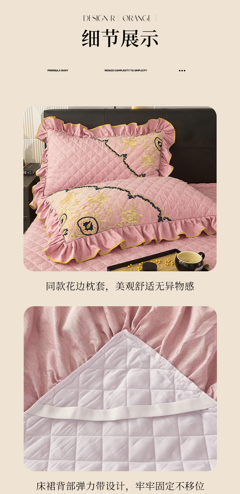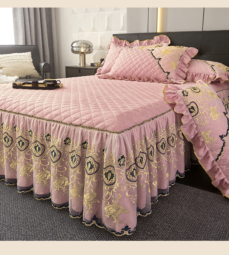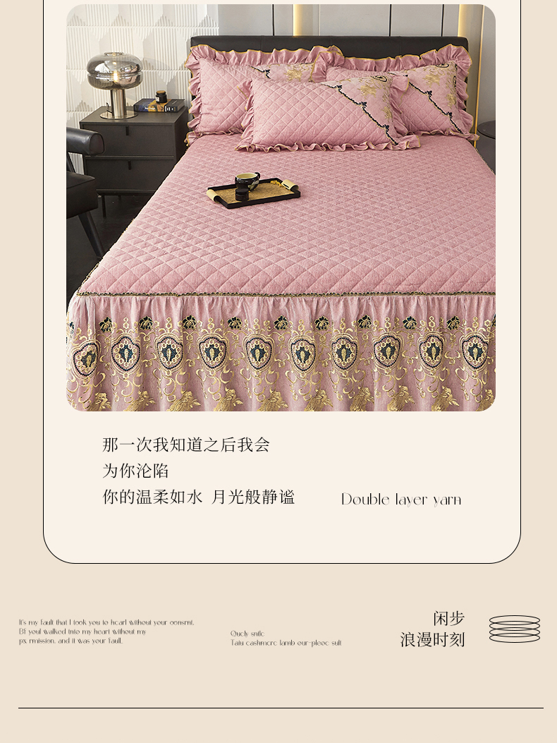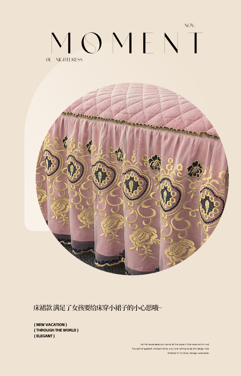 • 91家纺网 家纺一手货源 找家纺 罗艺轩 2024新款色织蕾丝夹棉床裙三件套-皇家贵族 皇家贵族-香妃粉