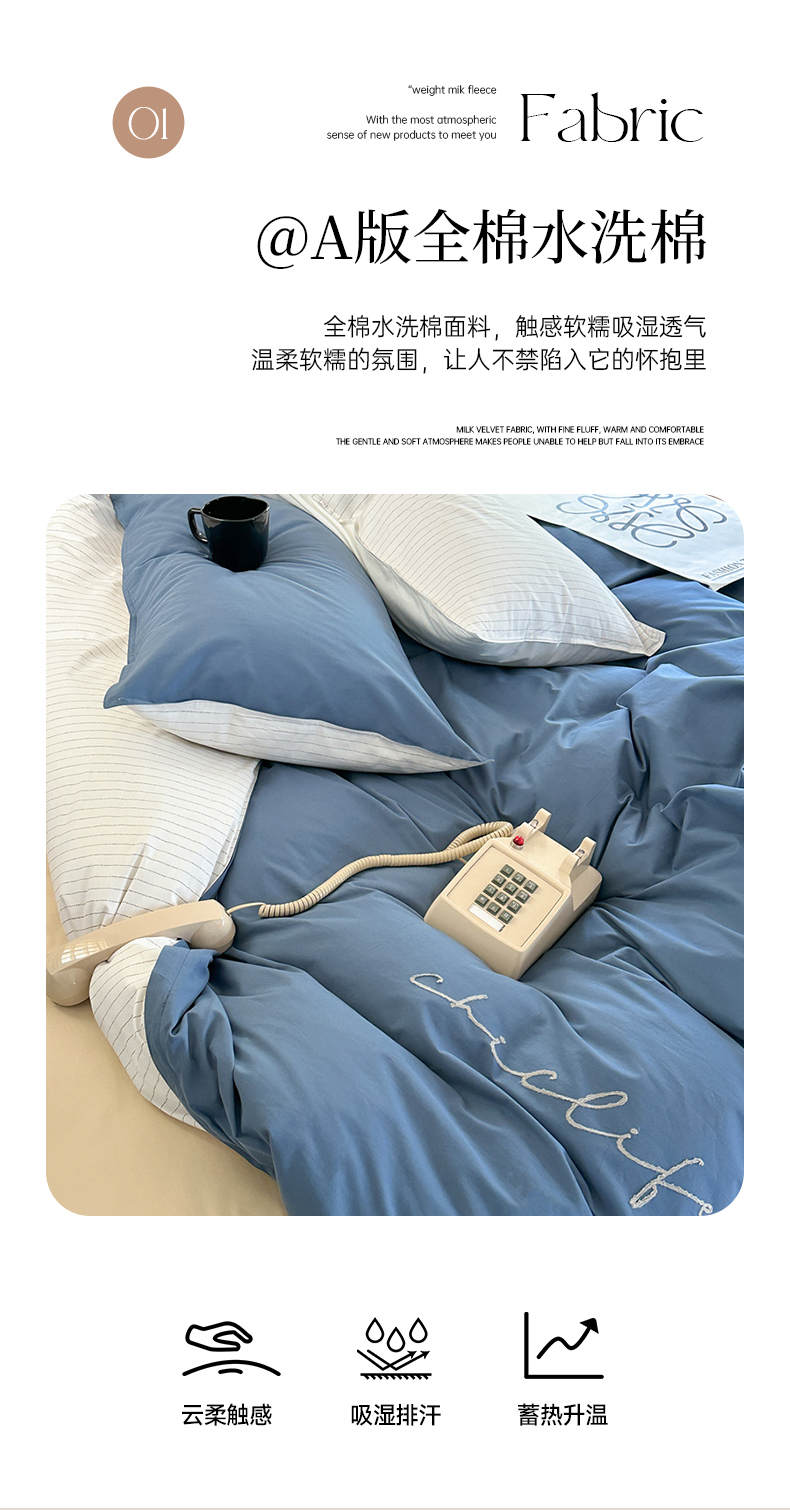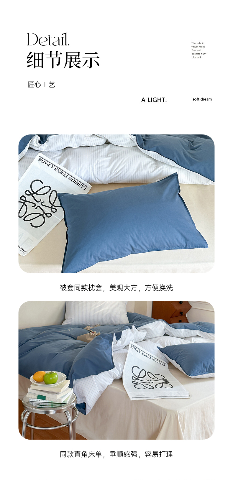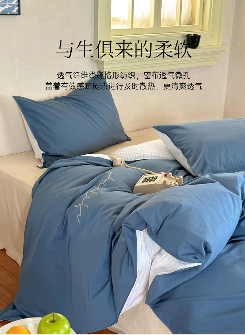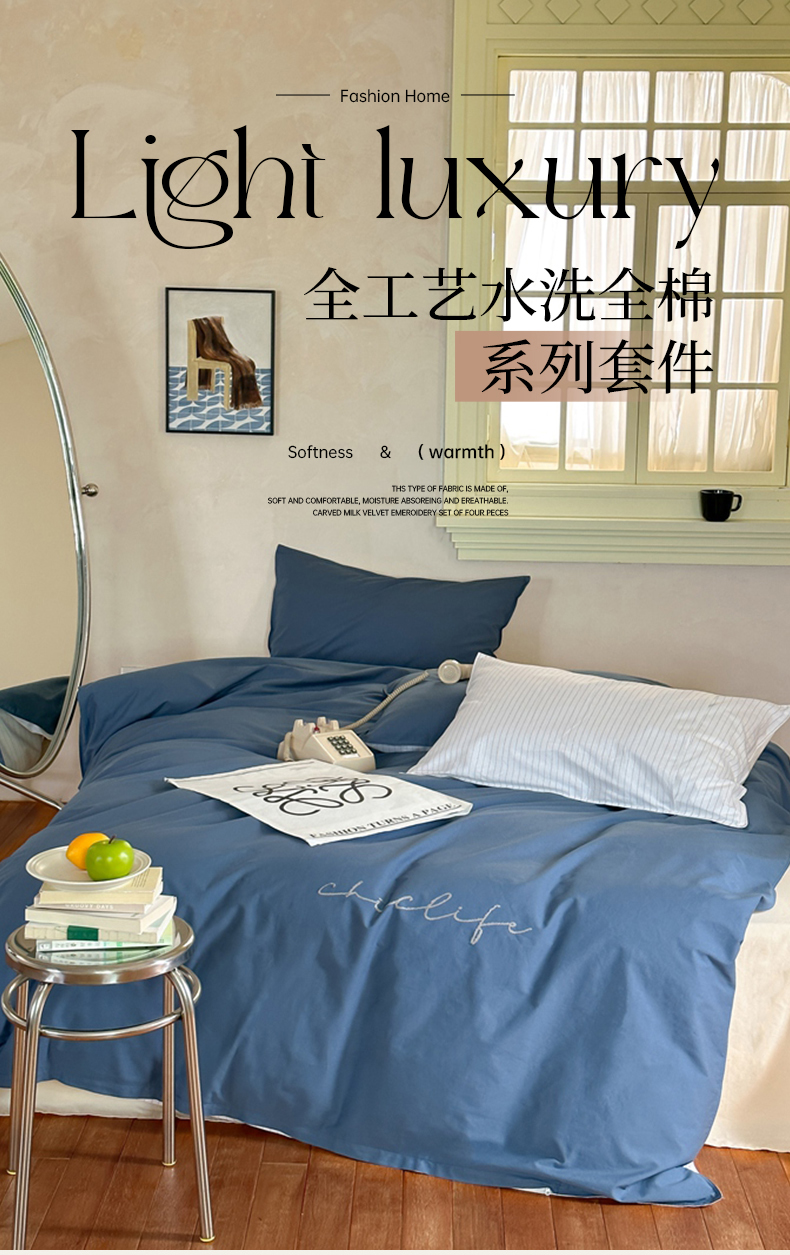(总)时年 2022新款全棉水洗棉四件套嵌绳款,爱丽丝蓝(浅蓝),克莱因蓝(深蓝)