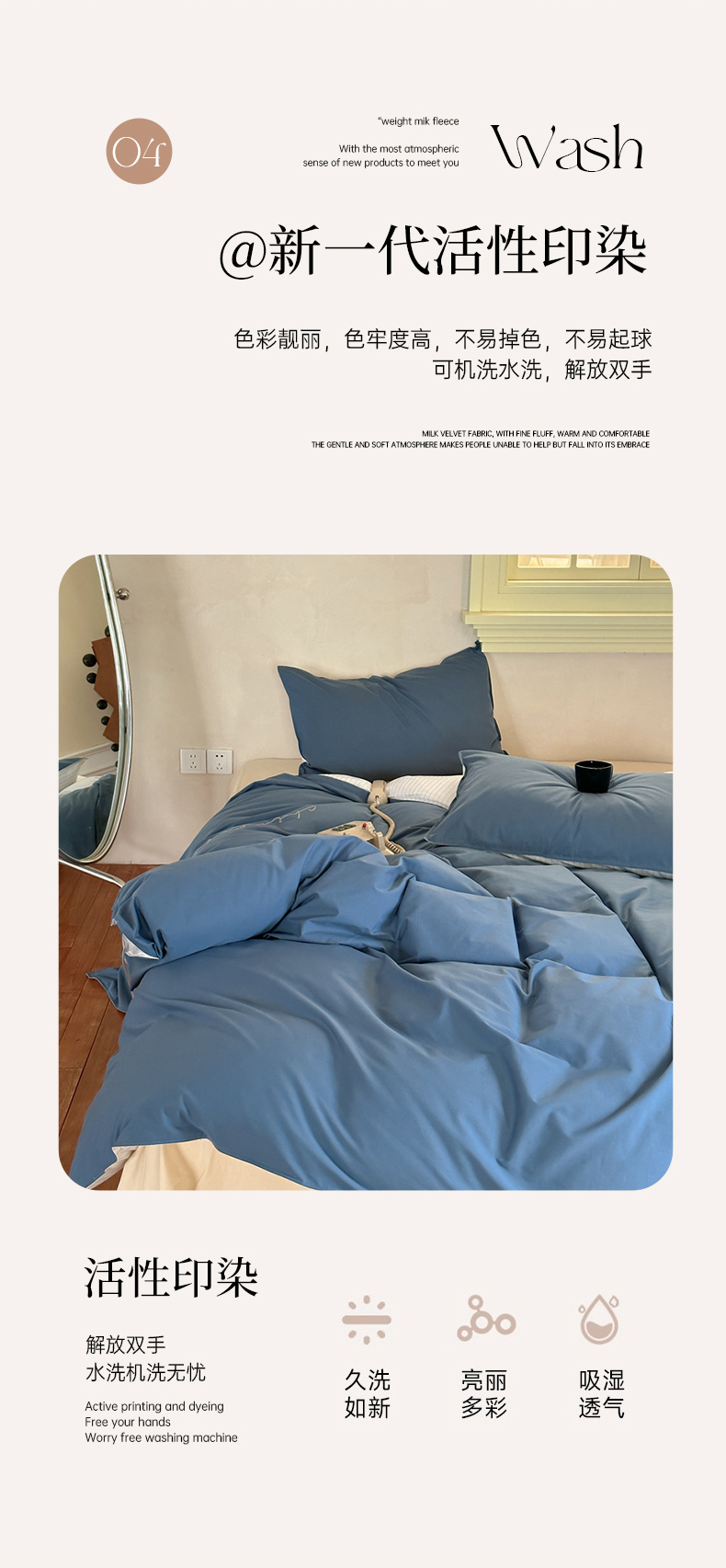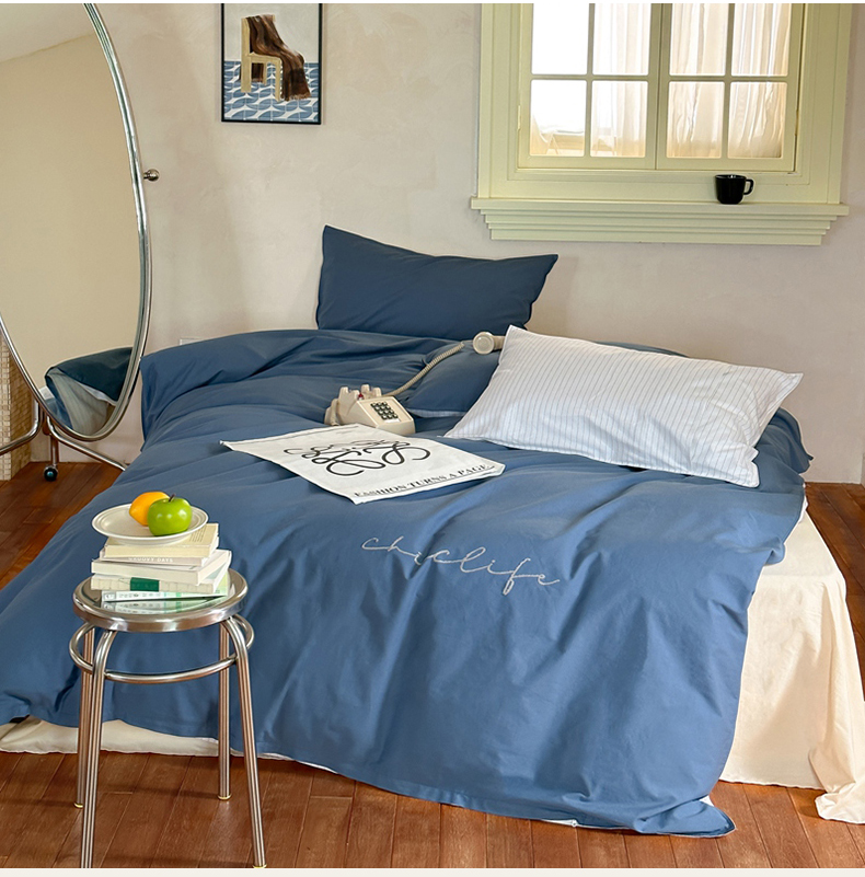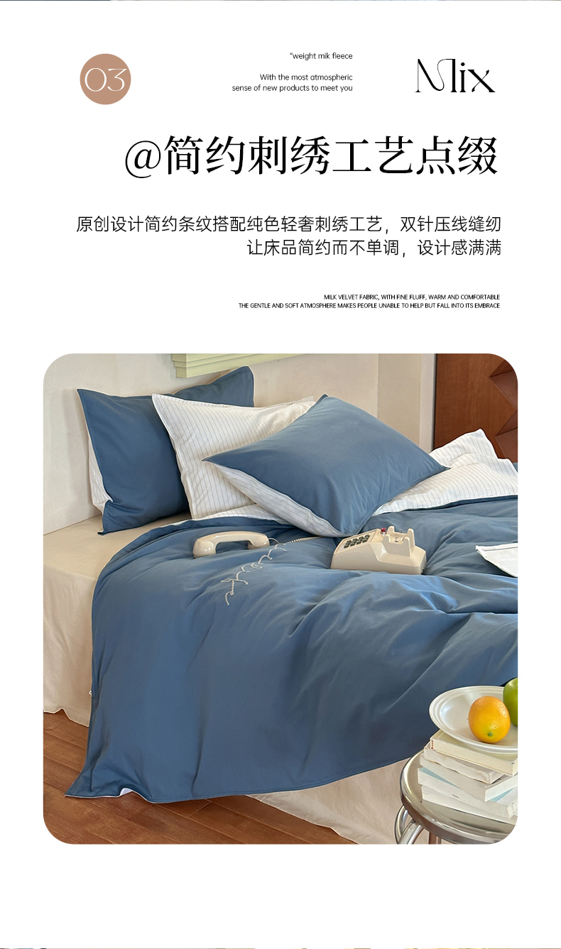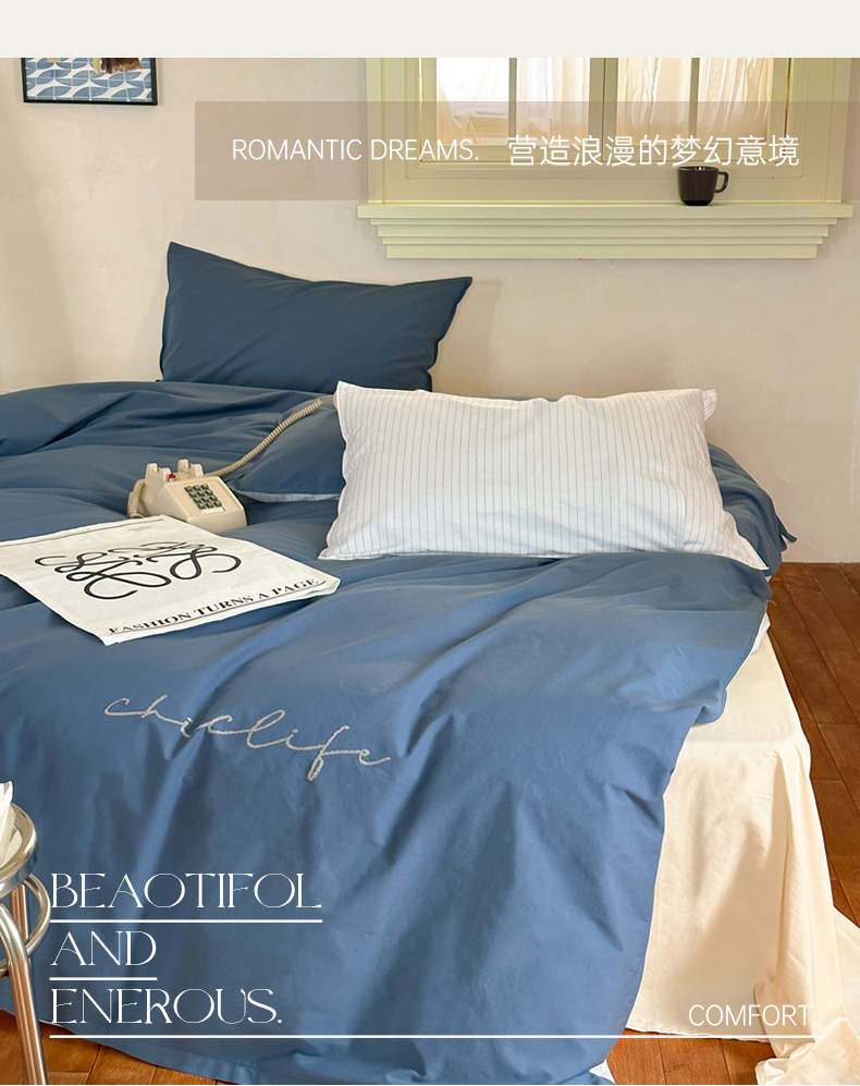(总)时年 2022新款全棉水洗棉四件套嵌绳款,爱丽丝蓝(浅蓝),克莱因蓝(深蓝)