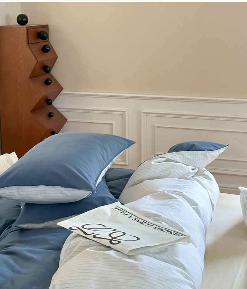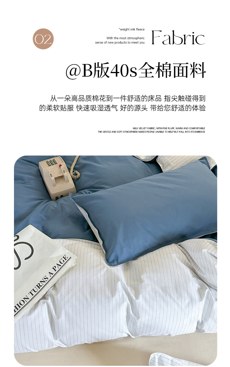 (总)时年2022新款全棉40支13372ins条纹款四件套,复古钴蓝,复古奶绿
