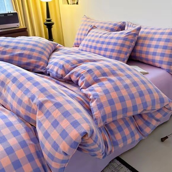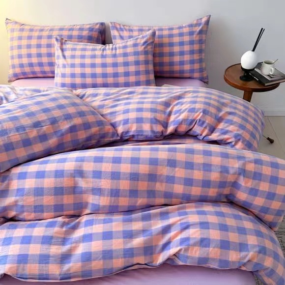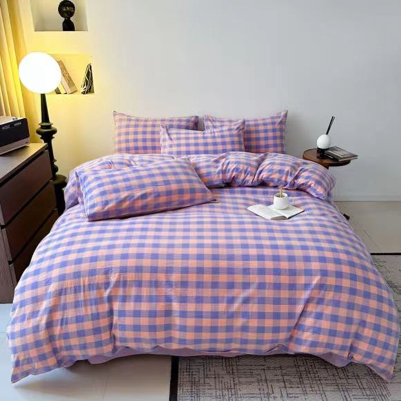 商品名称:玖琳家纺 2024新款全棉色织水洗棉四件套 粉紫中格