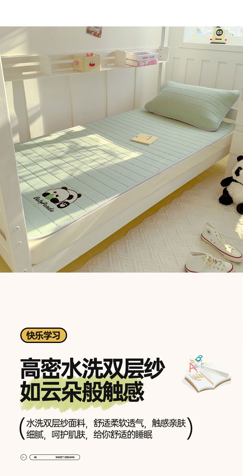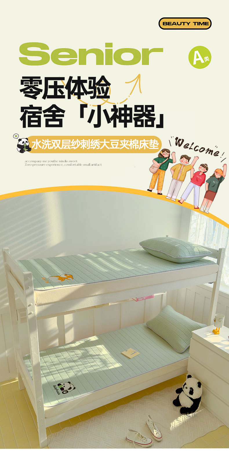 (总)2025新品水洗双层纱刺绣大豆夹棉床垫床护垫学生床