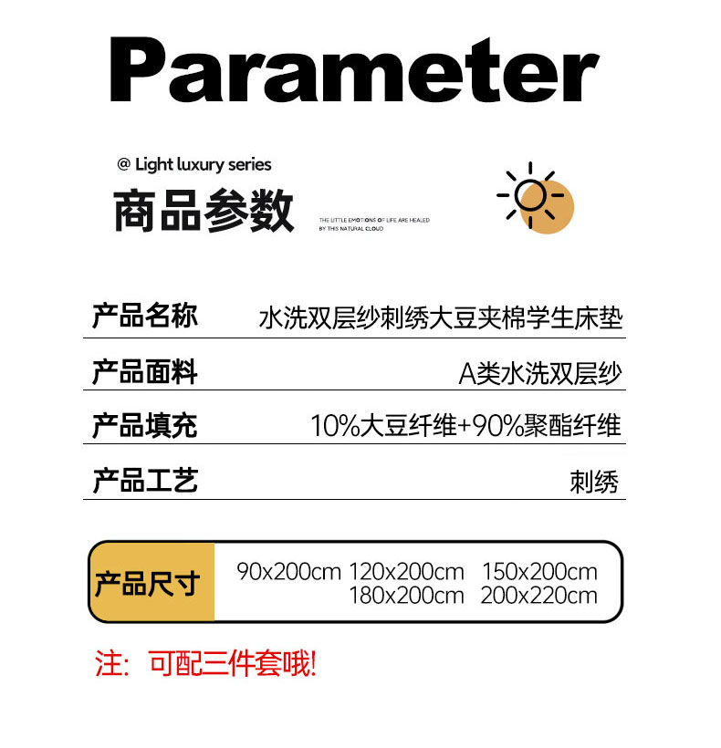 商品名称:(总)2025新品水洗双层纱刺绣大豆夹棉床垫床护垫学生床