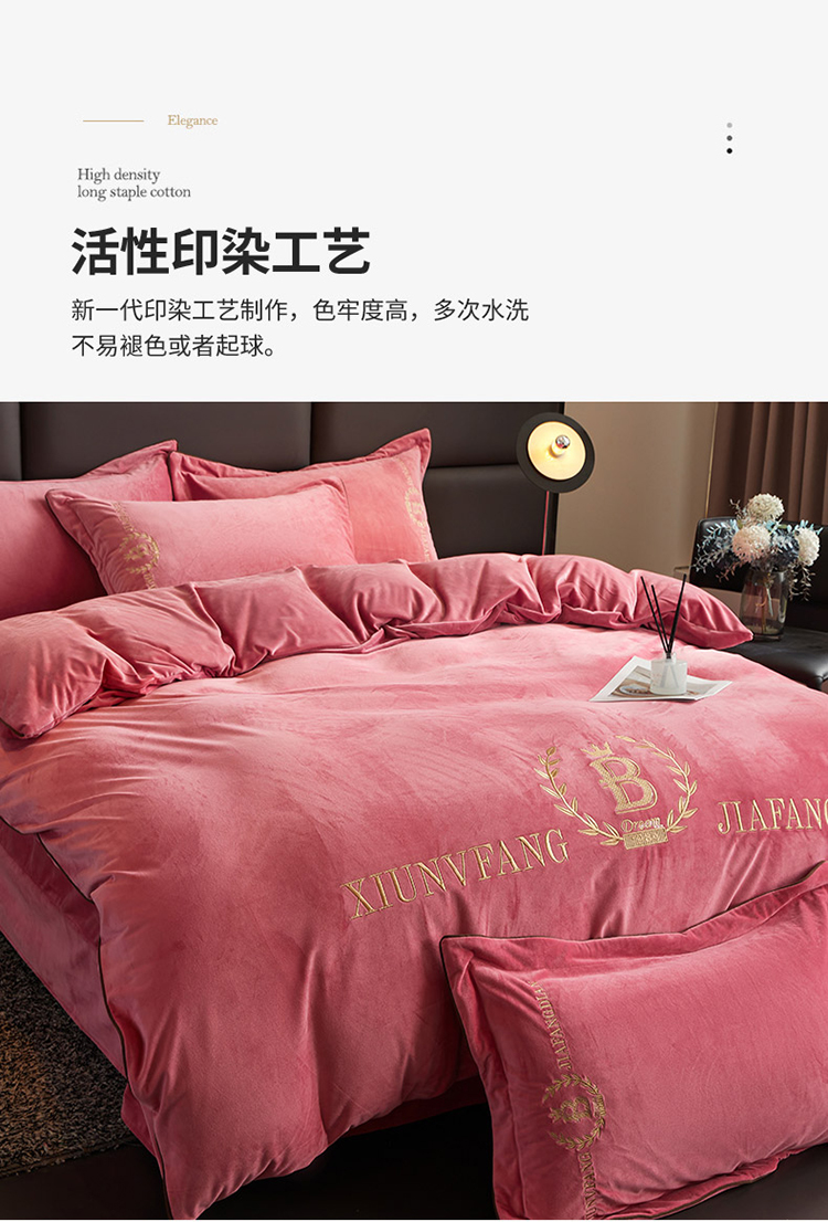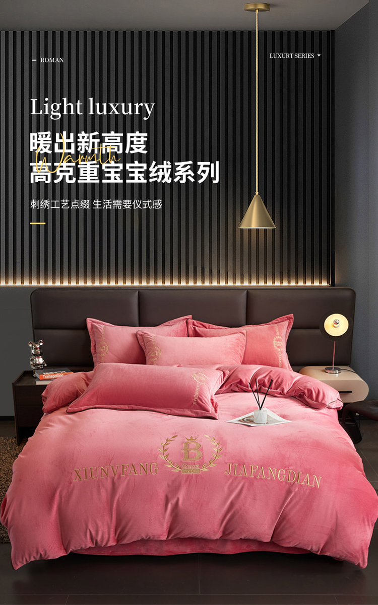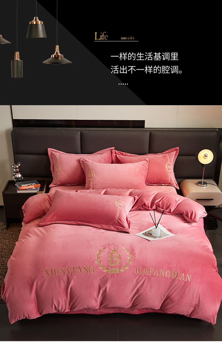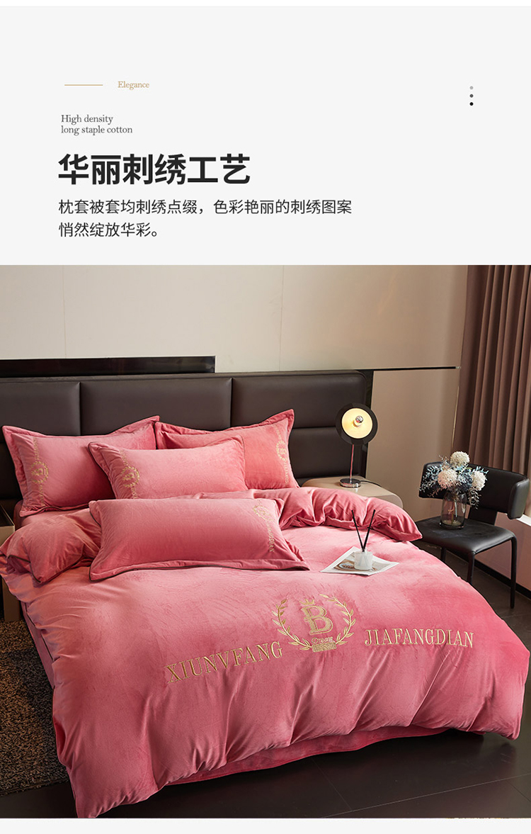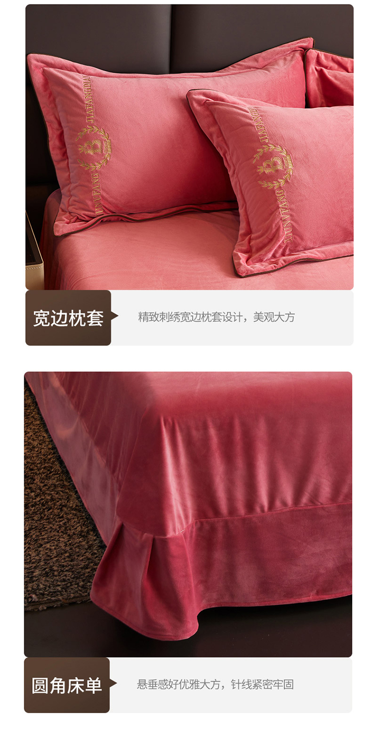 商品名称:绣女坊 2024新款高克重宝宝绒四件套 眷恋-红豆沙