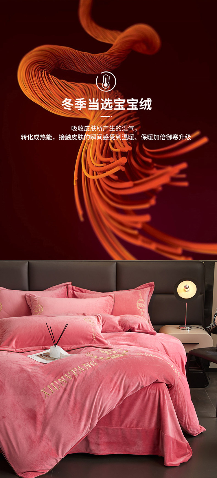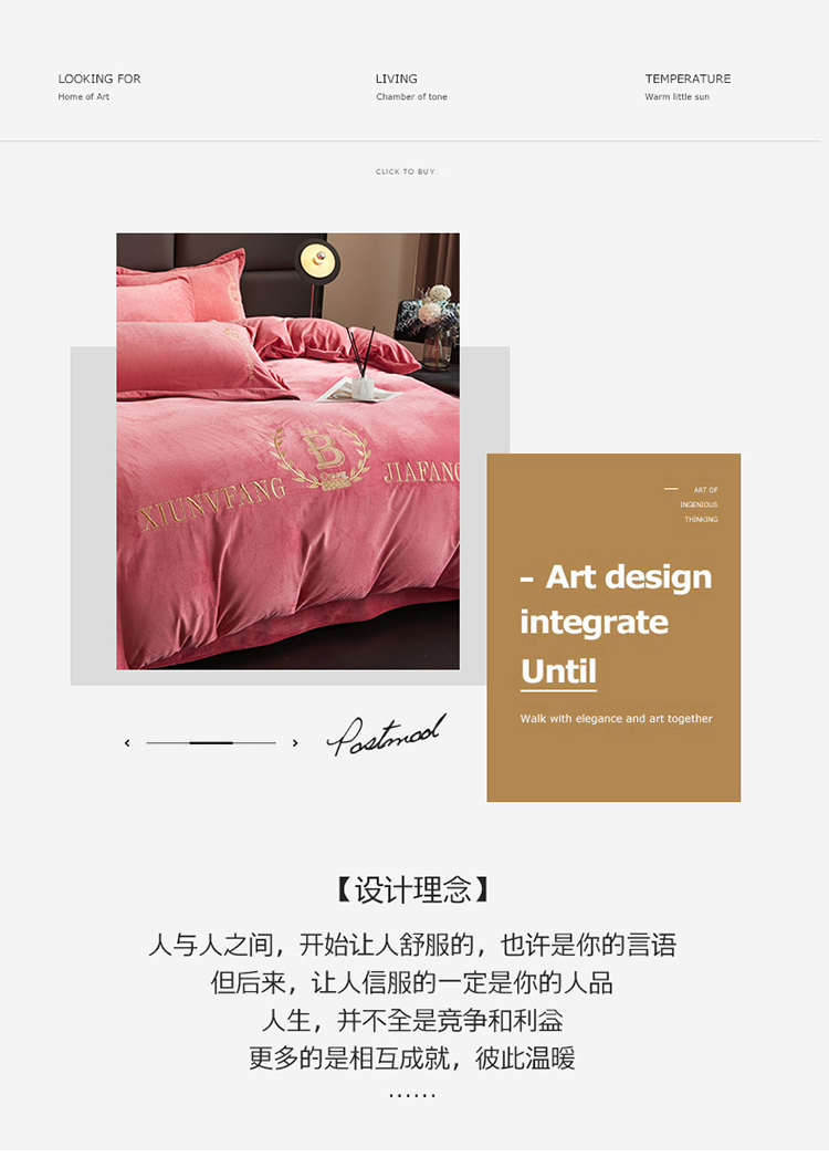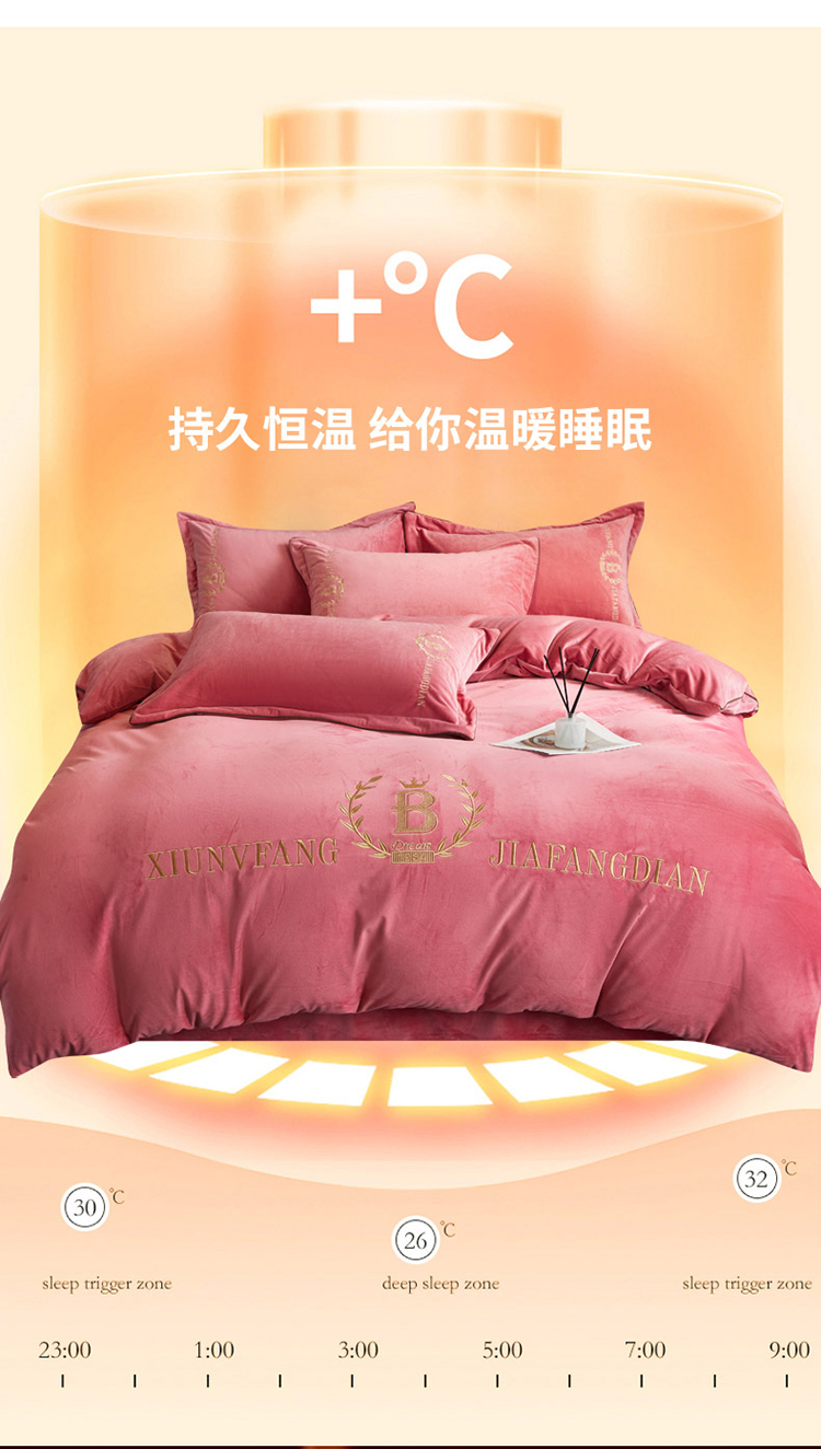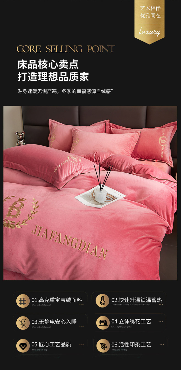 商品名称:绣女坊 2024新款高克重宝宝绒四件套 眷恋-红豆沙