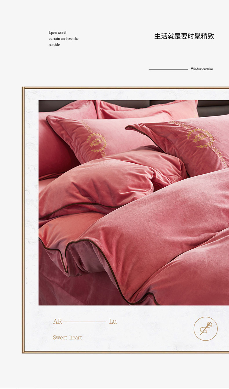 绣女坊 2024新款高克重宝宝绒四件套 眷恋-红豆沙