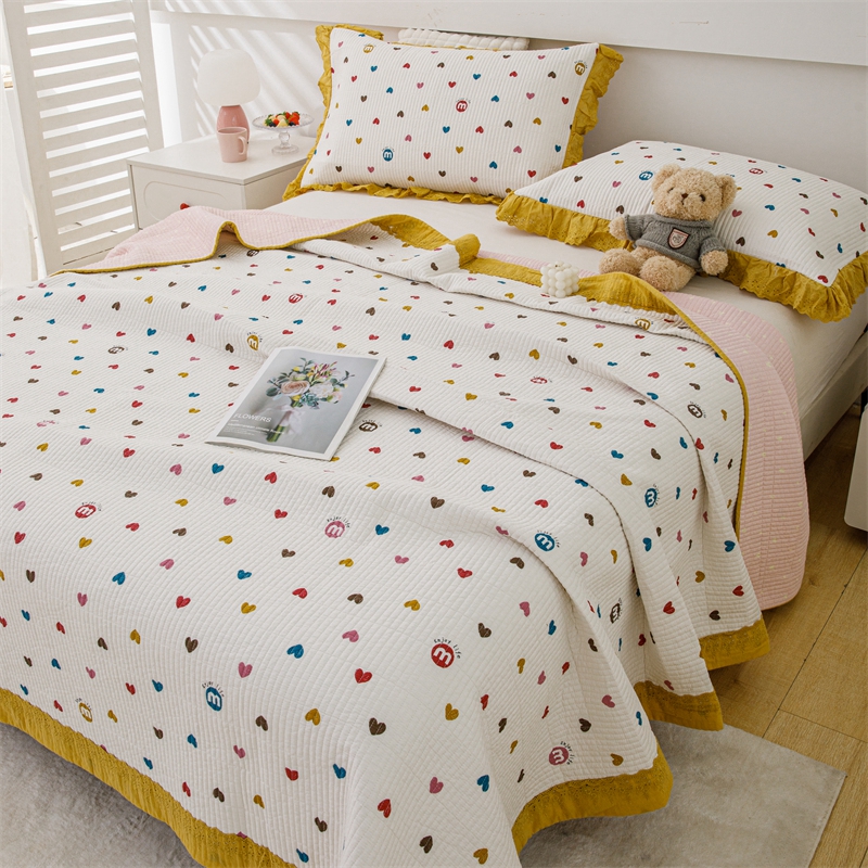 商品名称:暖居 2024新款韩系大包边双面纯棉床盖 爱心笑脸