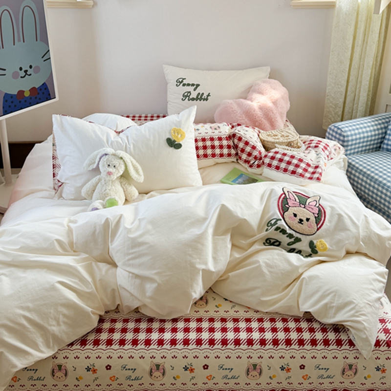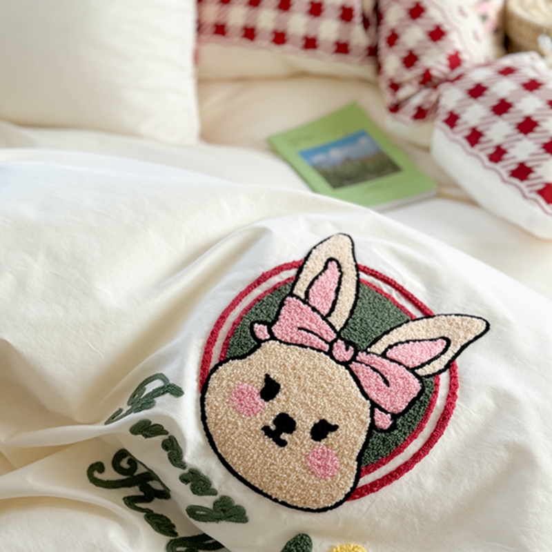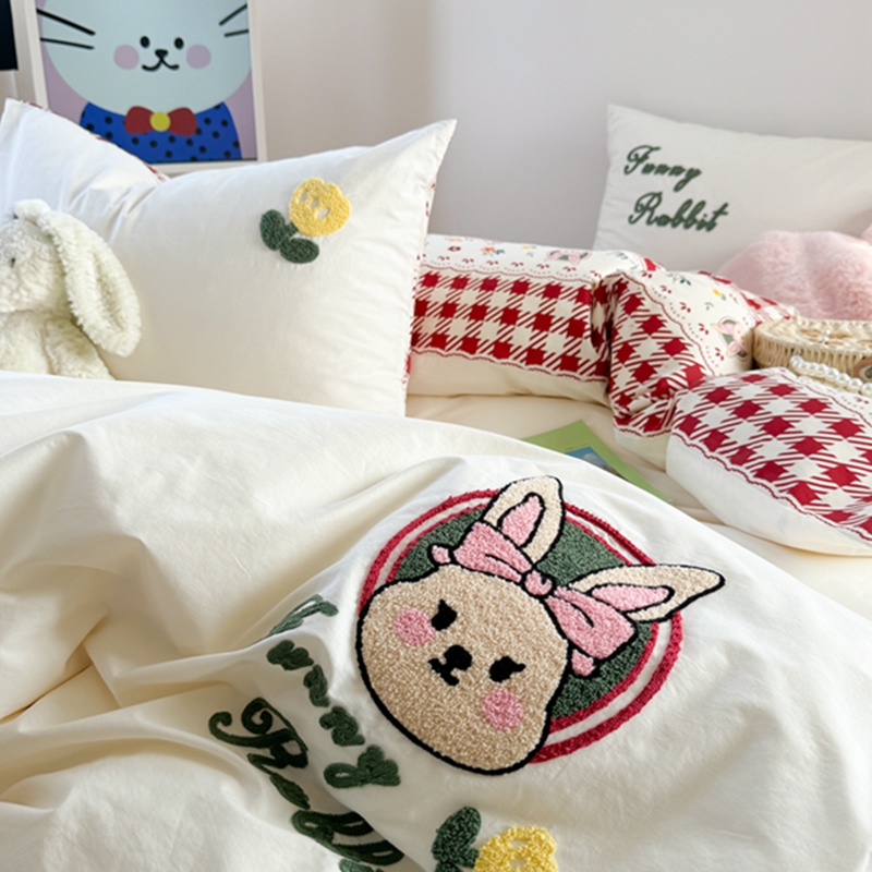 柚子 2024新款全棉水洗印加绣小可爱四件套 fuuny兔