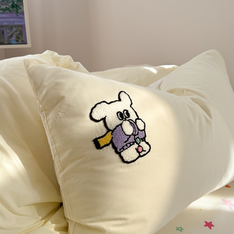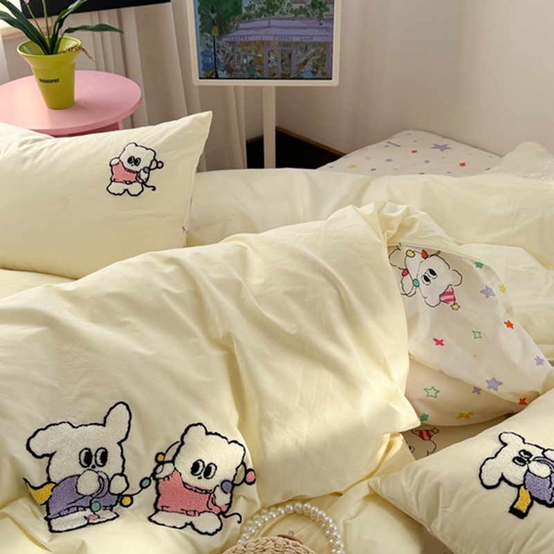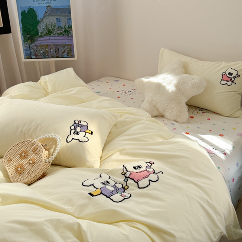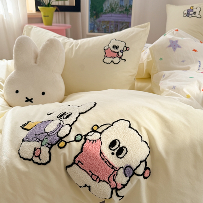 (总)柚子YOUTH 2025新款全棉纯棉工艺款13070贴布绣四件套,爱心小象,毛绒小狗,蘑菇女孩,星星法师