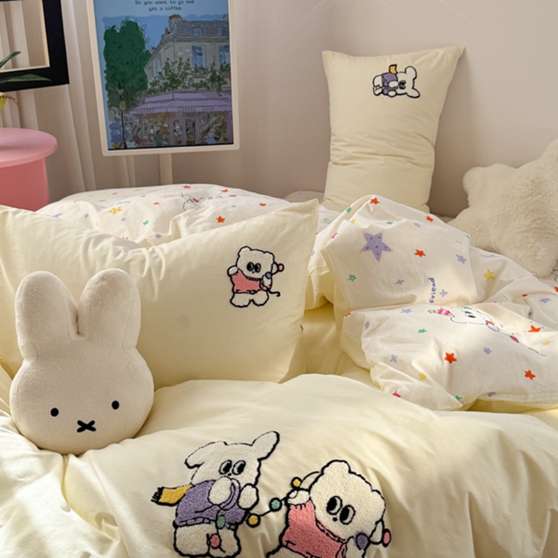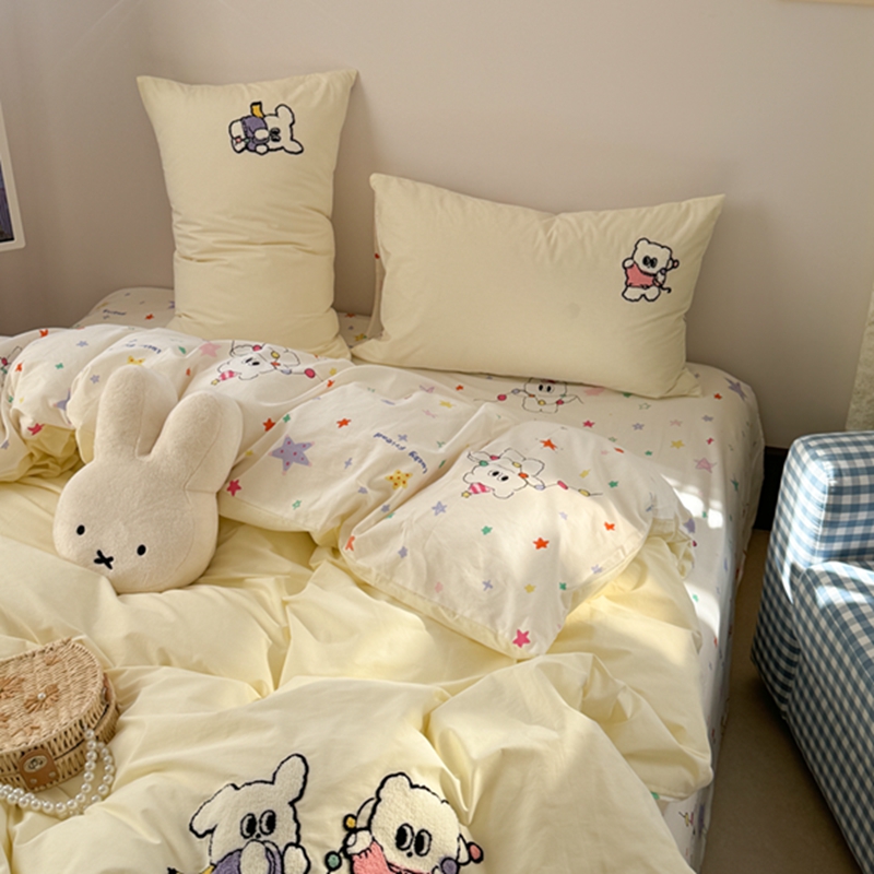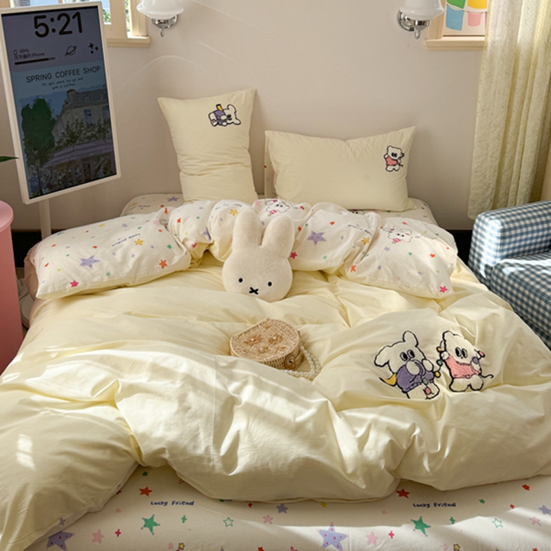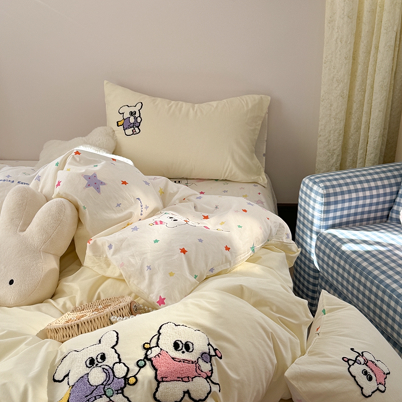 商品名称:柚子 2024新款全棉水洗印加绣小可爱四件套 星星灯