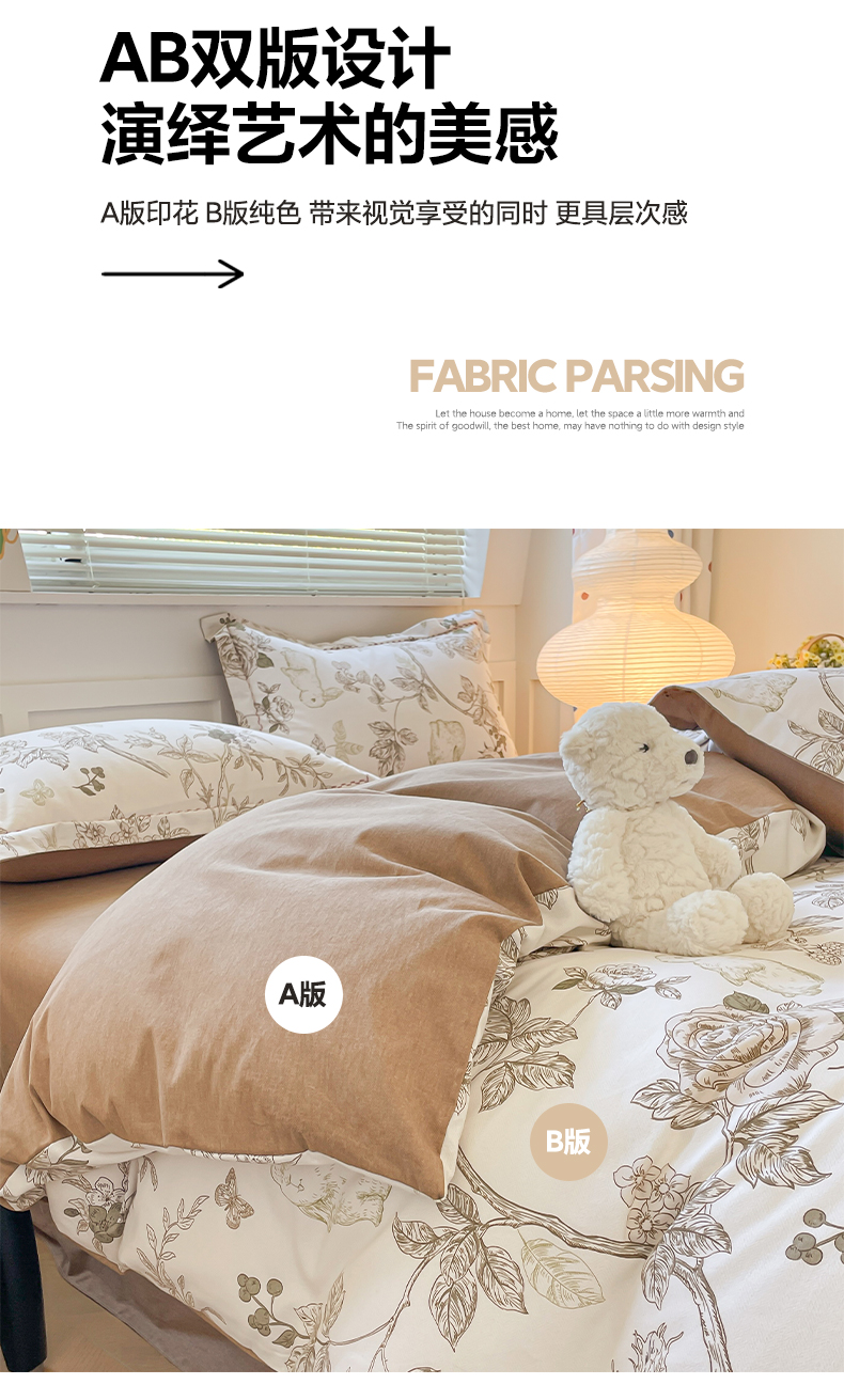 商品名称:宜家坊 2024秋冬新款全棉超柔加厚生态磨毛四件套 米兰风情