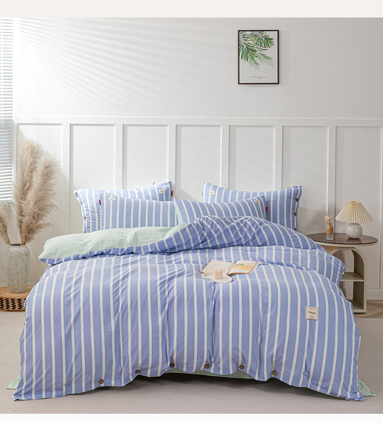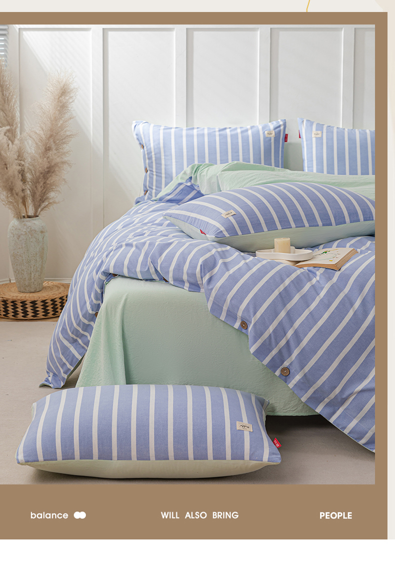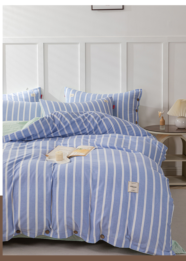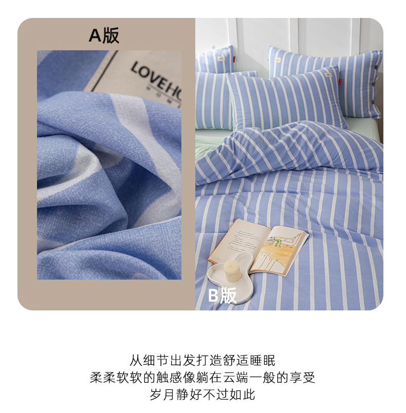 当前位置: 91家纺网 > 商品网购 > 床品套件 > 四件套 > 水洗棉四件套 > 睡美美家纺 2024新款加厚水洗棉四件套-条纹系列 条纹-海蓝