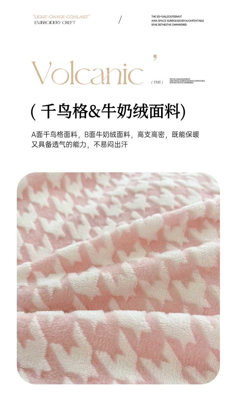星座家纺 2025新款千鸟格花边款牛奶绒四件套 千鸟格-浅粉