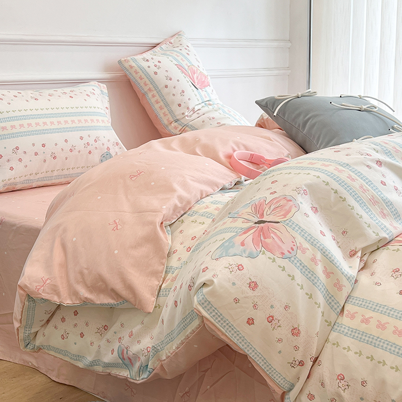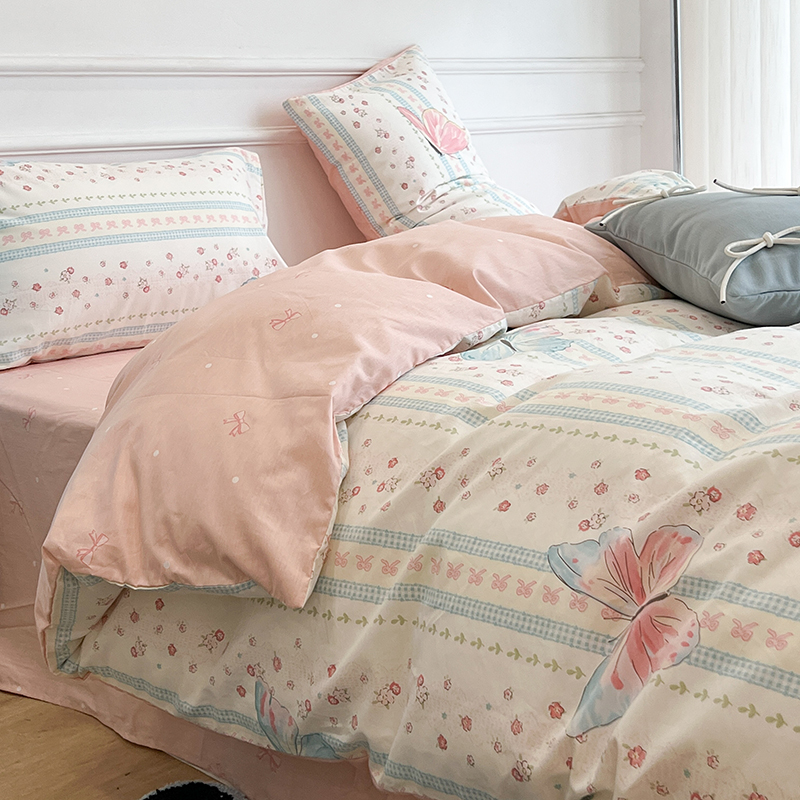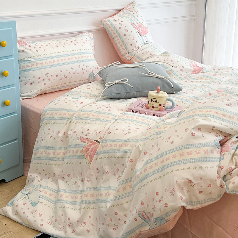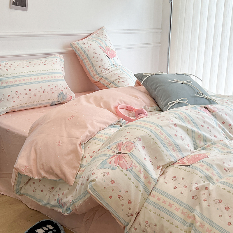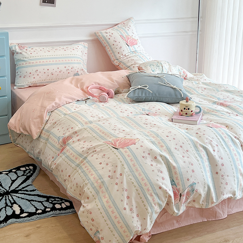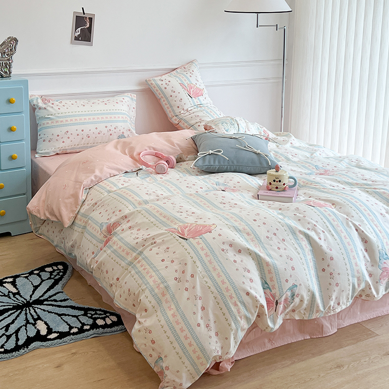 商品名称:昔可家纺 2024新款13372全棉亲肤四件套-小清新系列 粉色琉璃蝴蝶