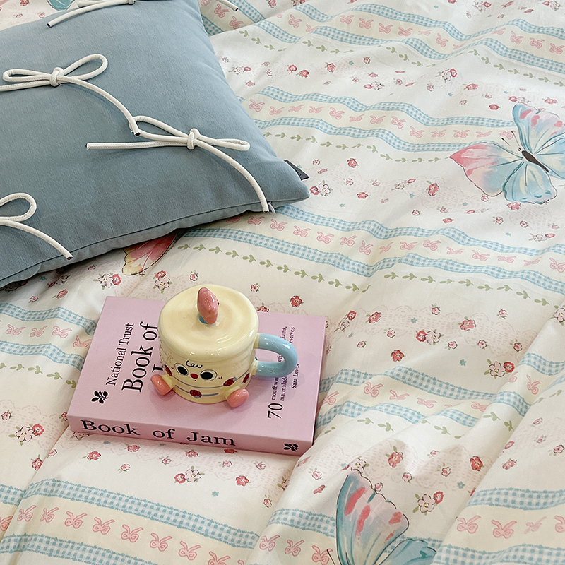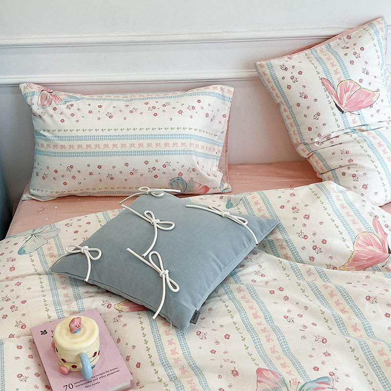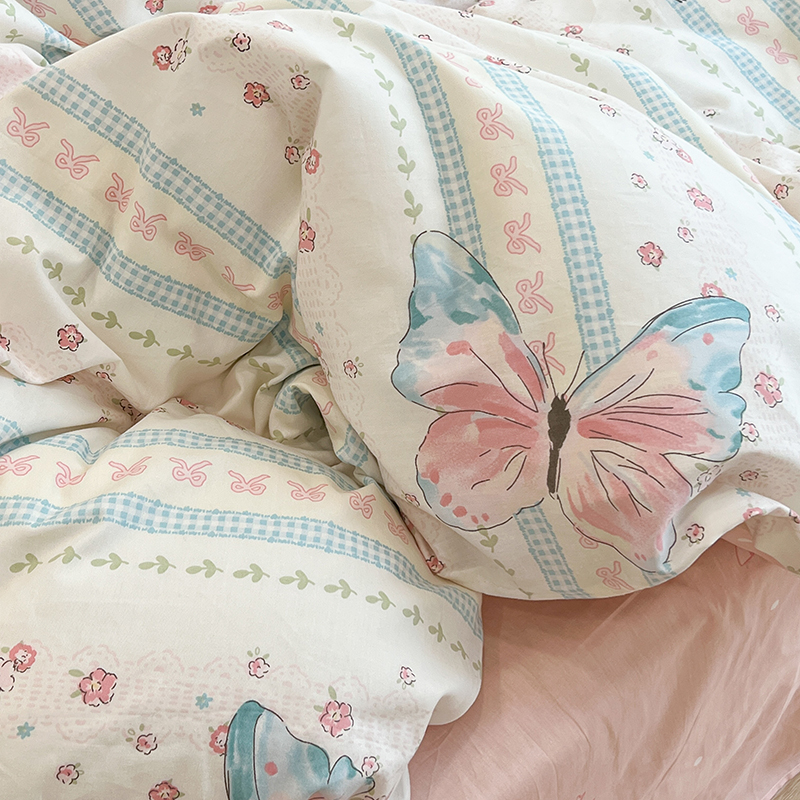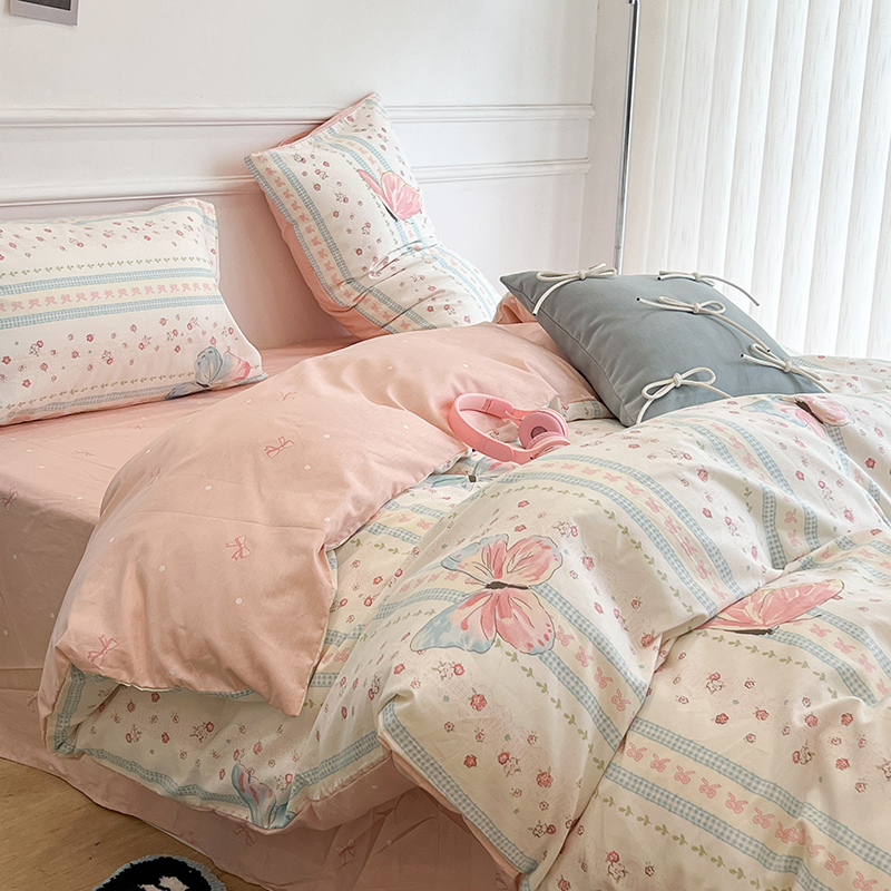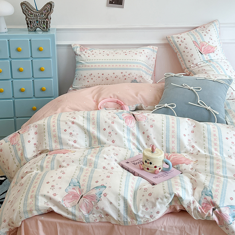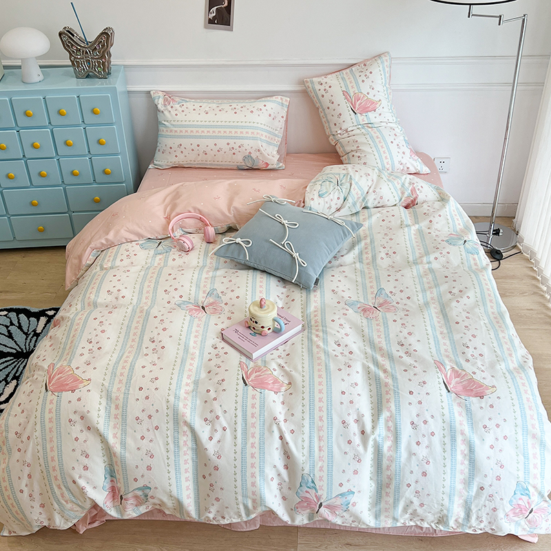 商品名称:昔可家纺 2024新款13372全棉亲肤四件套-小清新系列 粉色琉璃蝴蝶