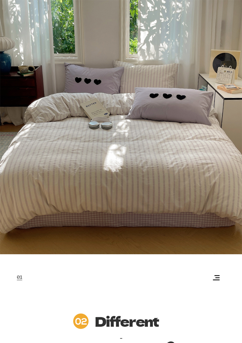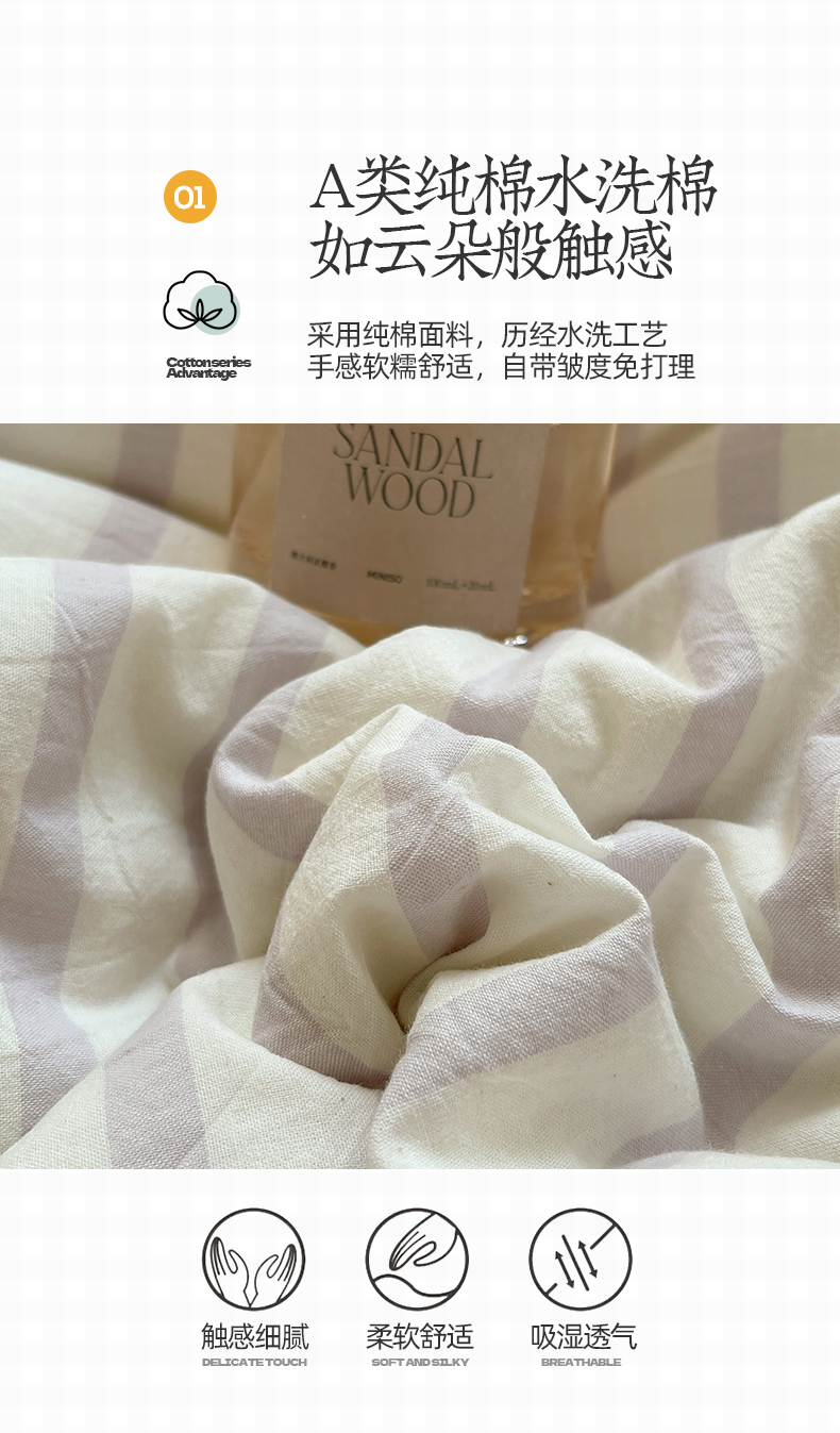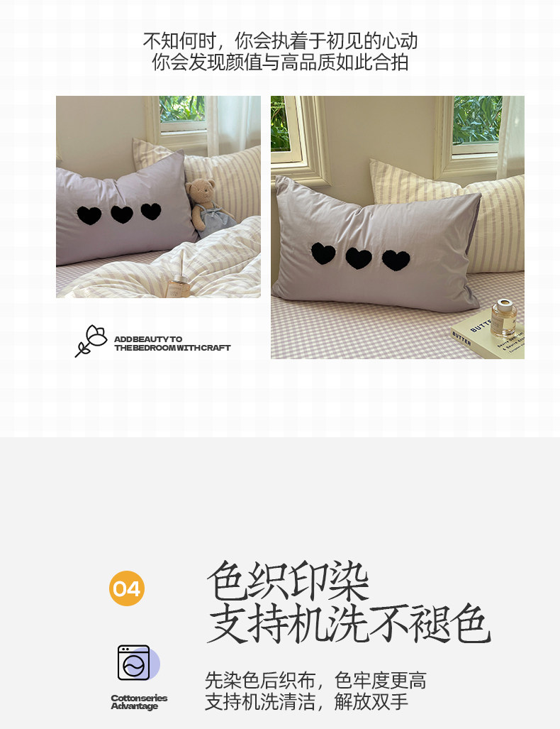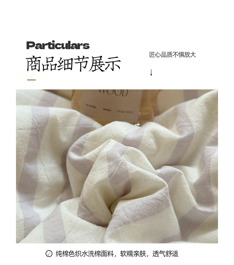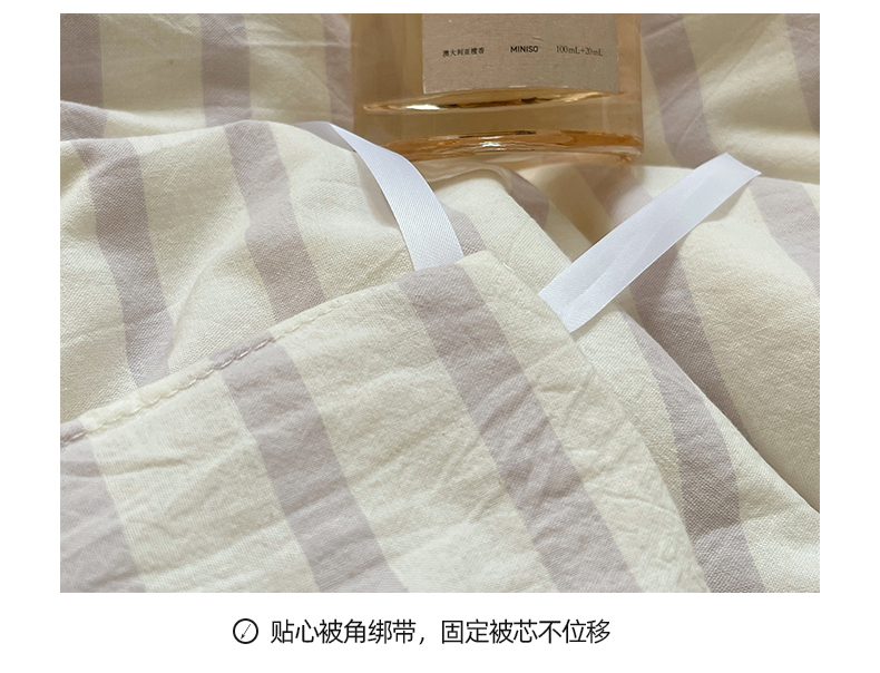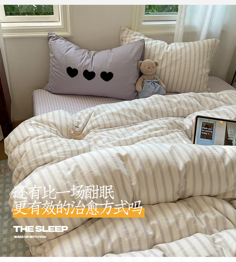 当前位置: 91家纺网 > 商品网购 > 床品套件 > 四件套 > 其它四件套 > 桃子家居 2024新款A类色织毛巾绣条纹小清新野原混搭纯棉系列四件套 色织水洗棉-野原紫爱心