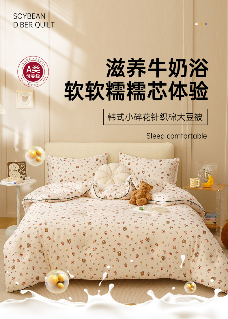 • 91家纺网 家纺一手货源 找家纺 优被业 2024新款A类婴儿级牛奶针织棉大豆被四季被冬被 萌趣