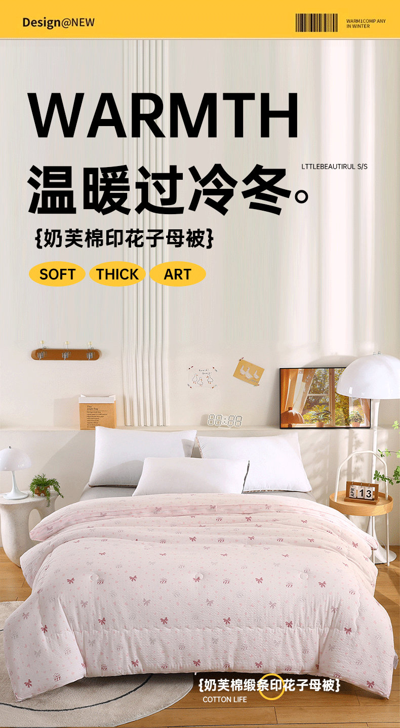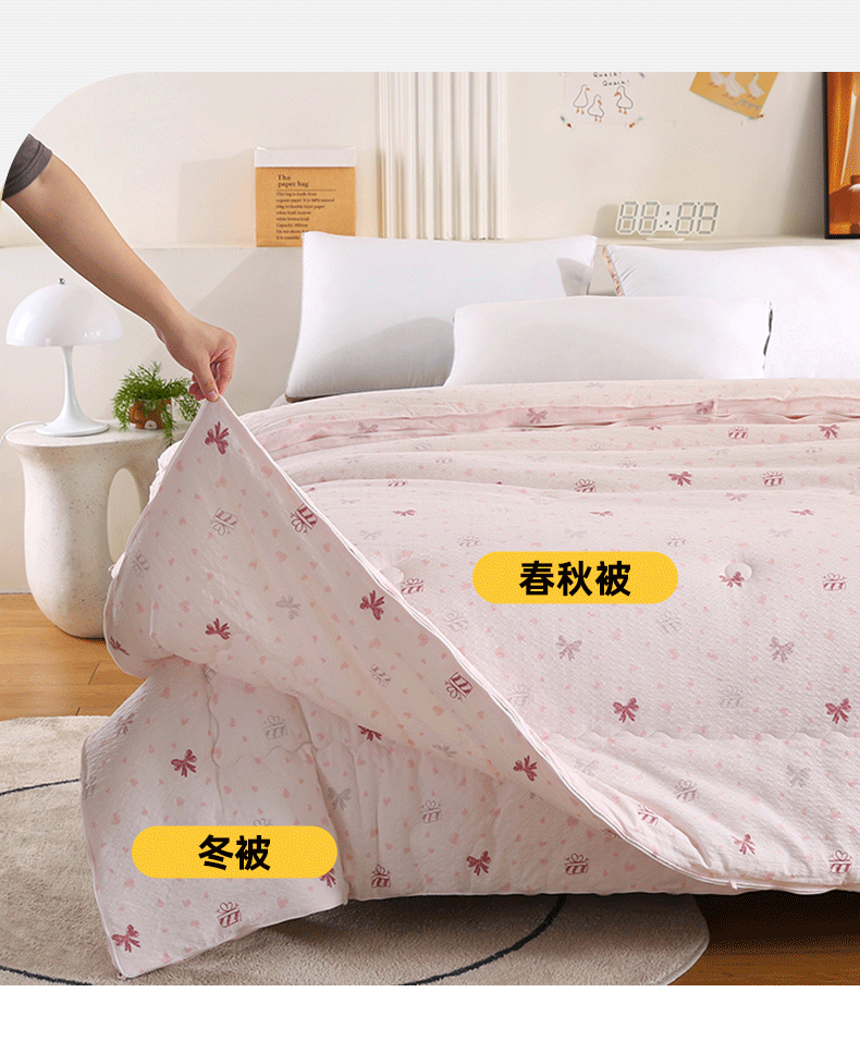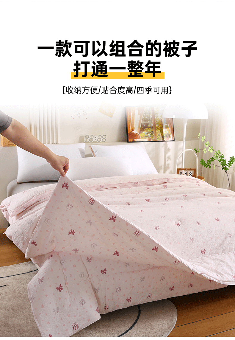 商品名称:怡源梦 2024新款奶芙棉印花子母被 蝴蝶结-粉色