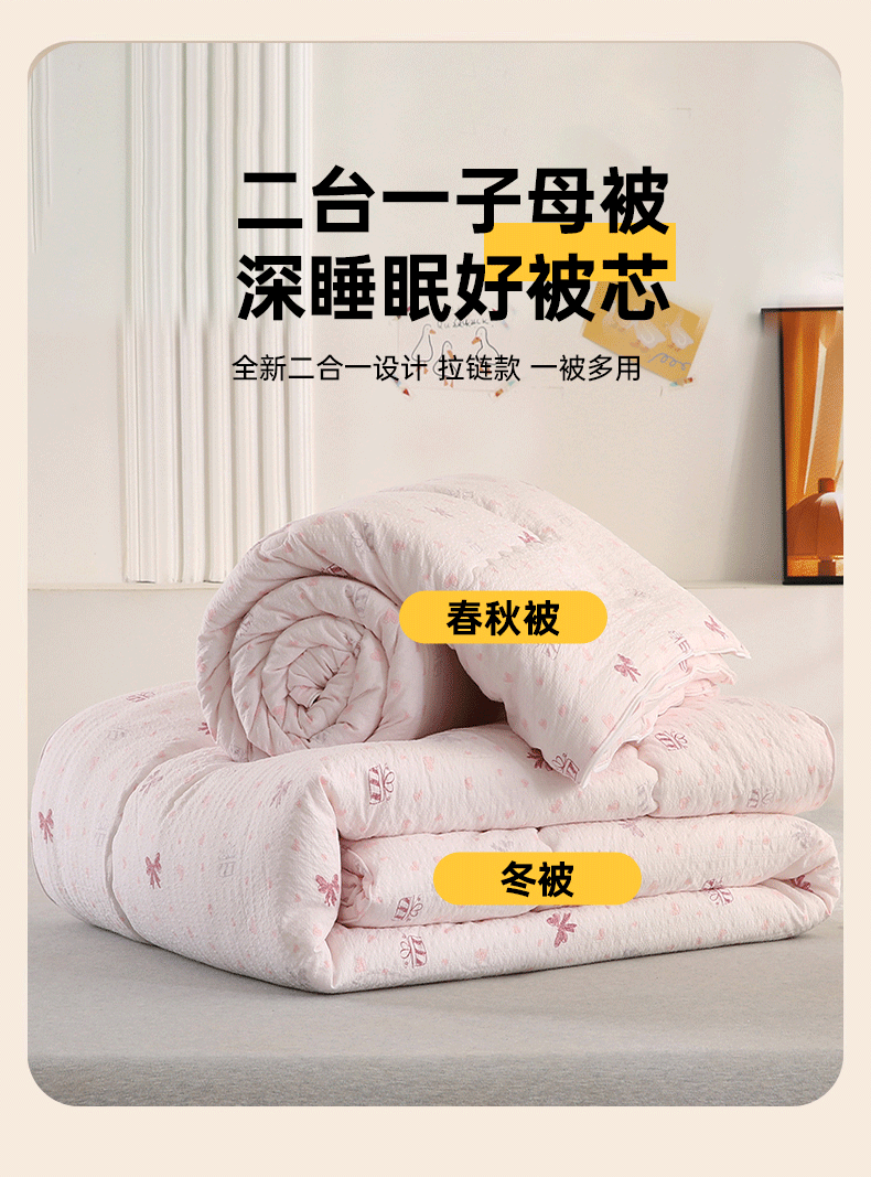 怡源梦 2024新款奶芙棉印花子母被 蝴蝶结-粉色