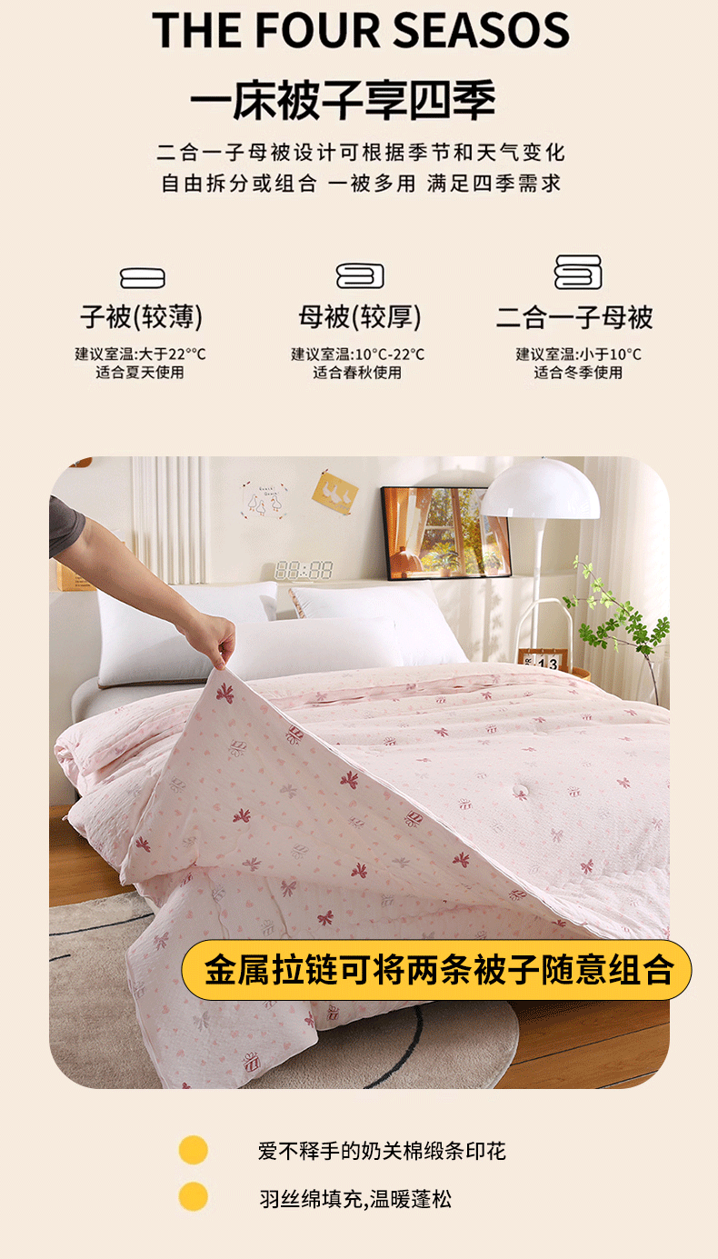 (总)怡源梦 2024新款云锦棉提花子母被,白色,粉色,灰色