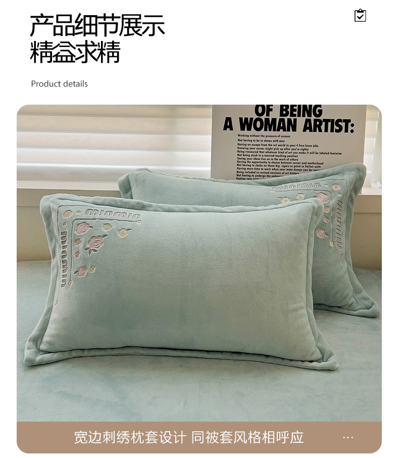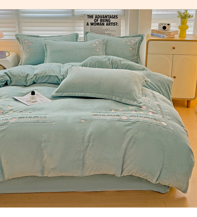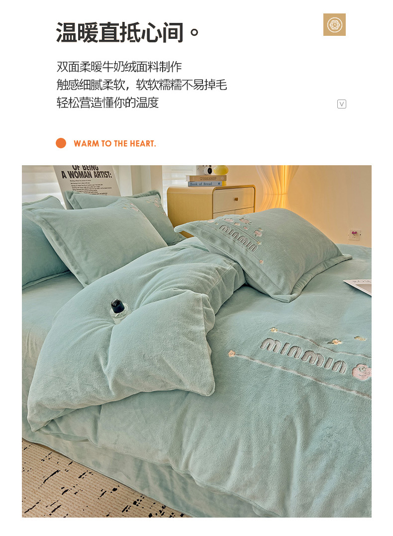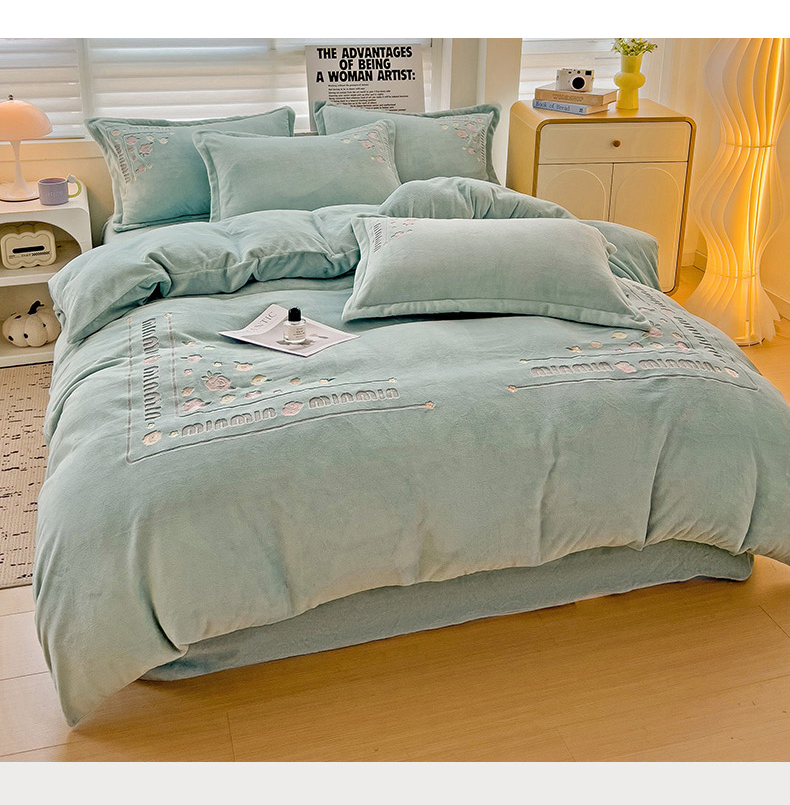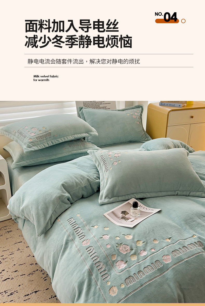 (总)星尚家纺 2024新款全消光230g牛奶绒刺绣保暖四件套-花漾,晨雾绿,豆沙粉,樱花粉
