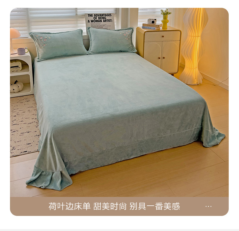 (总)星尚家纺 2024新款加厚保暖全消光牛奶绒夹棉床裙四件套-玫瑰之恋,粉玉,寐紫,浅蓝,水绿