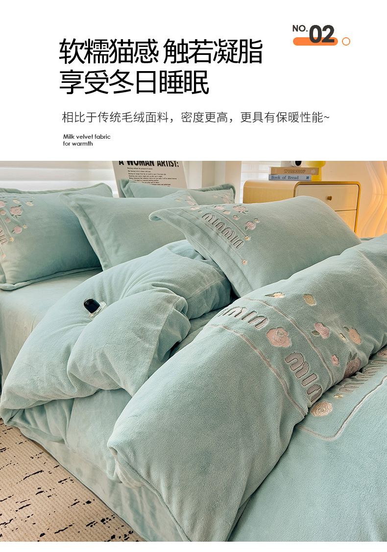 (总)星尚家纺 2024新款全消光A类230g牛奶绒刺绣保暖绒四件套-郁金香,淡雅粉,梵星绿,高级灰,蔷薇紫,婴儿蓝,樱花粉