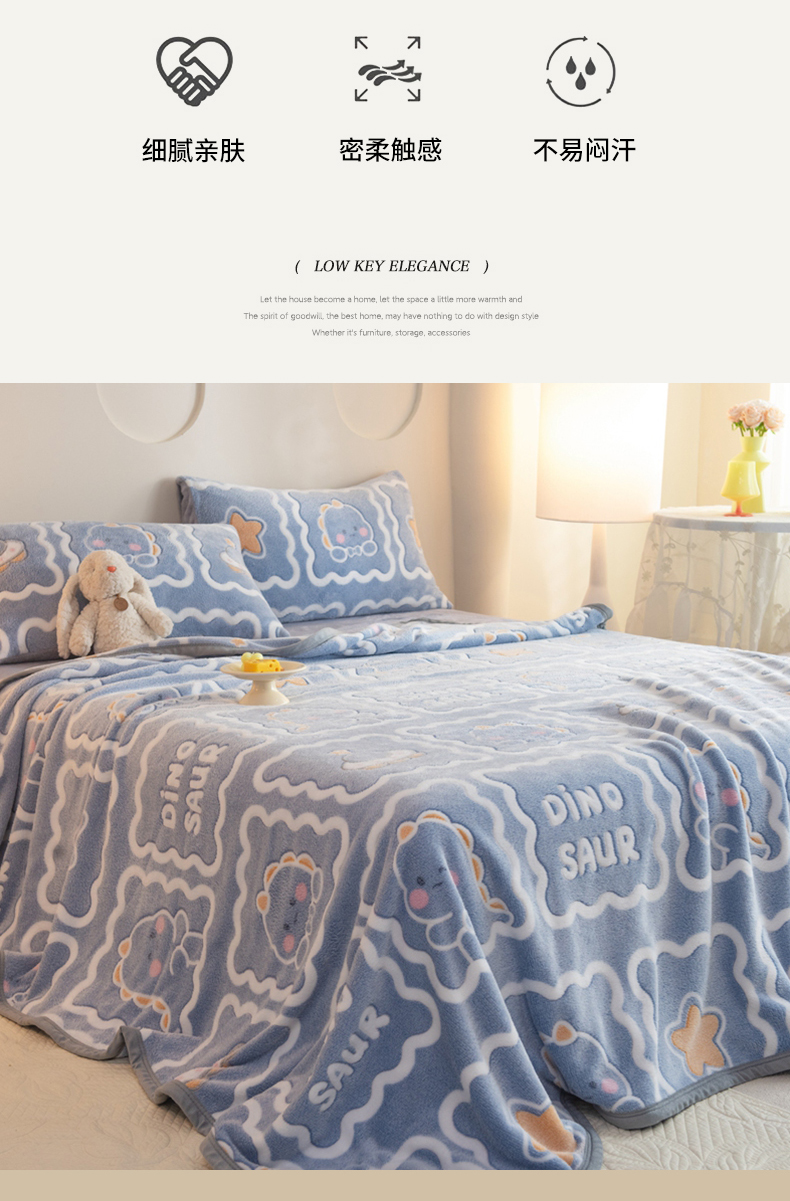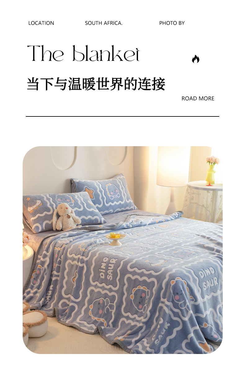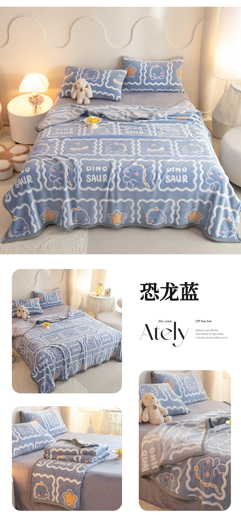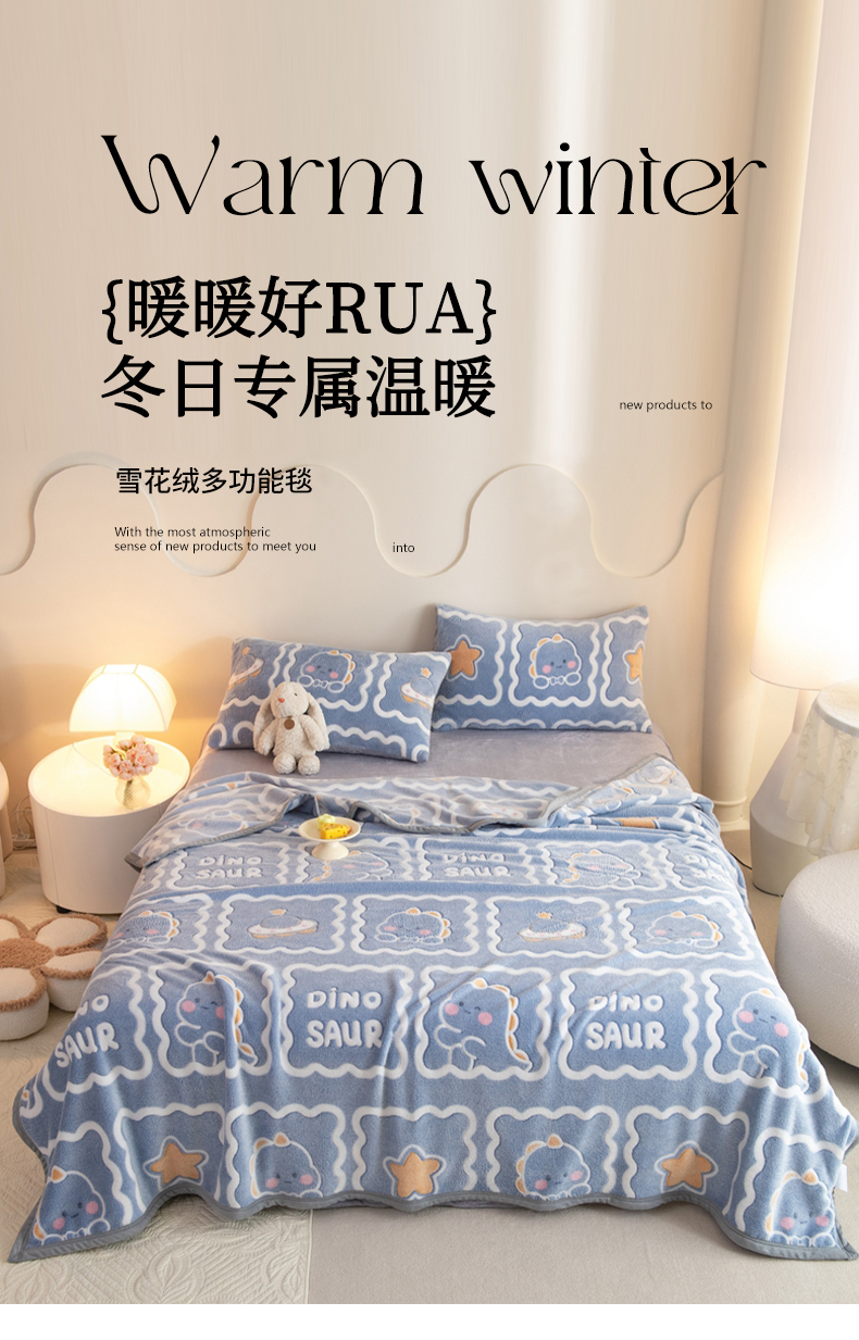 商品名称:慕梵家居 2024新款雪花绒多功能包边毛毯 恐龙蓝