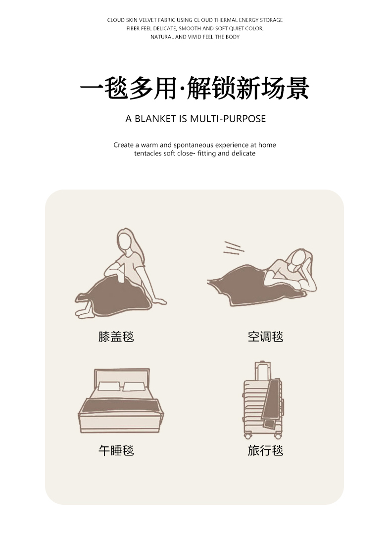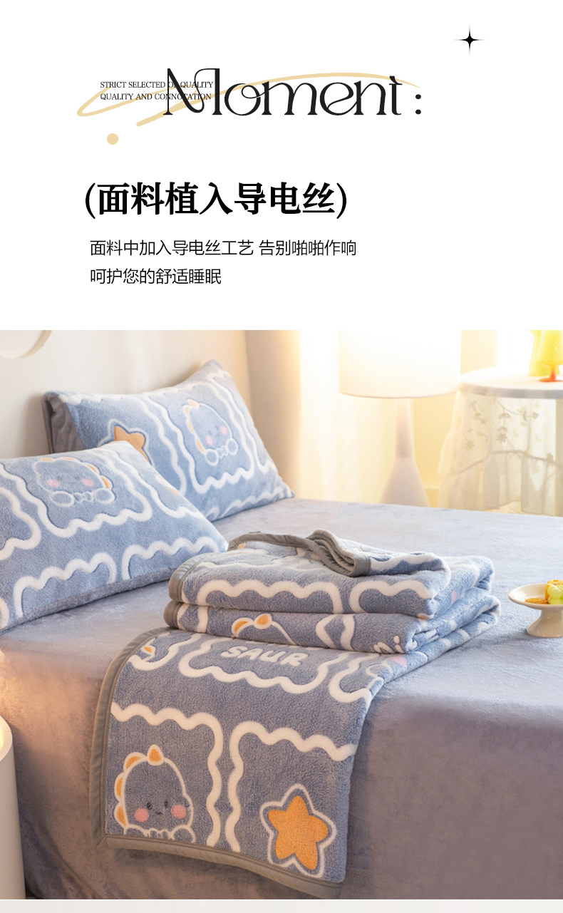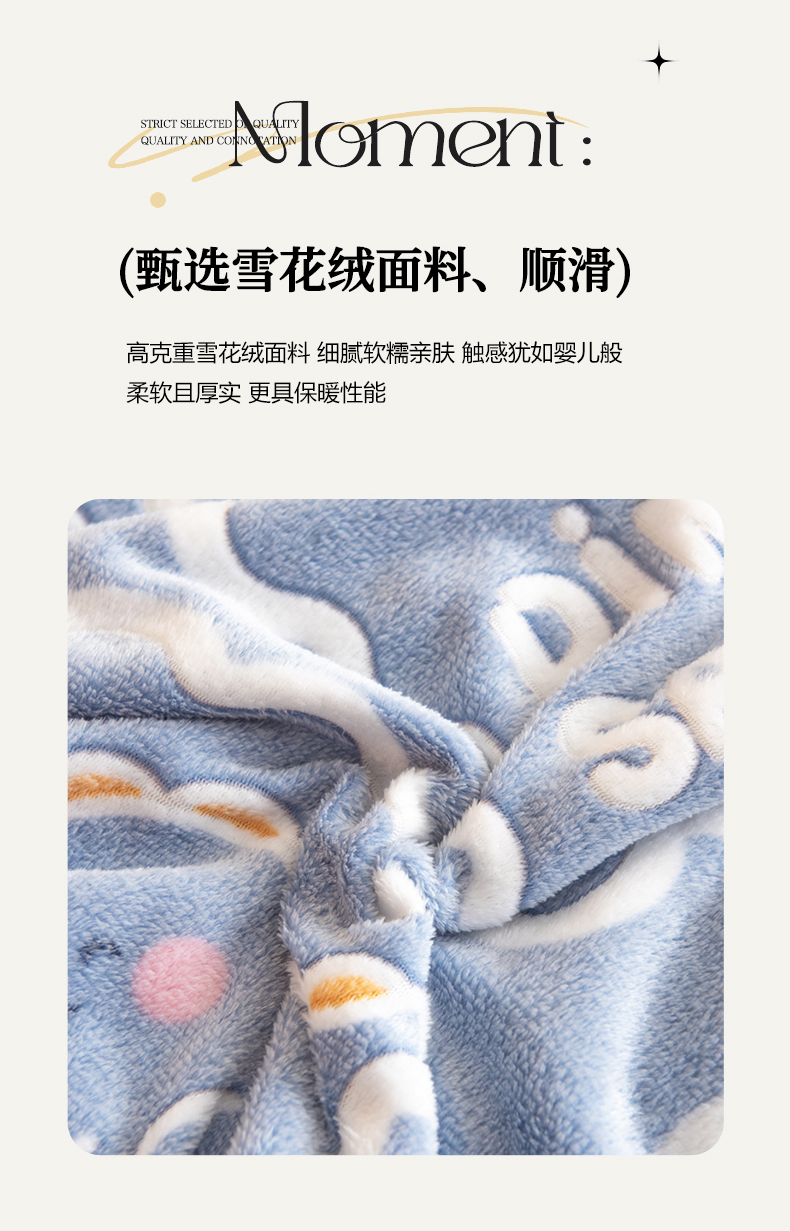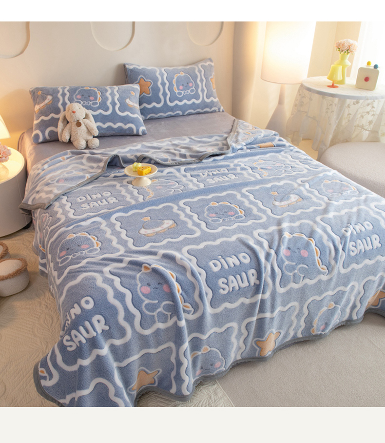 商品名称:慕梵家居 2024新款雪花绒多功能包边毛毯 恐龙蓝