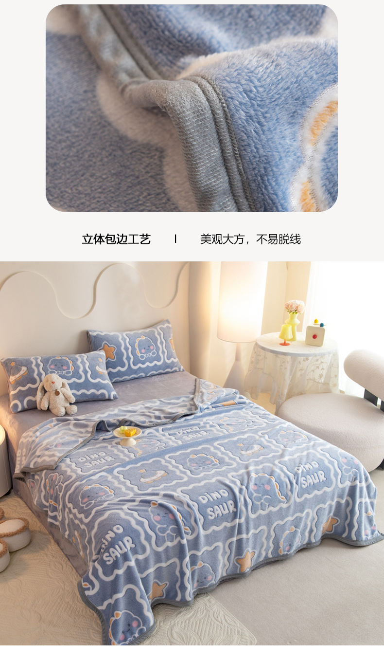 慕梵家居 2024新款雪花绒多功能包边毛毯 恐龙蓝