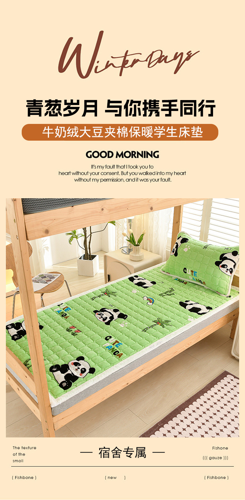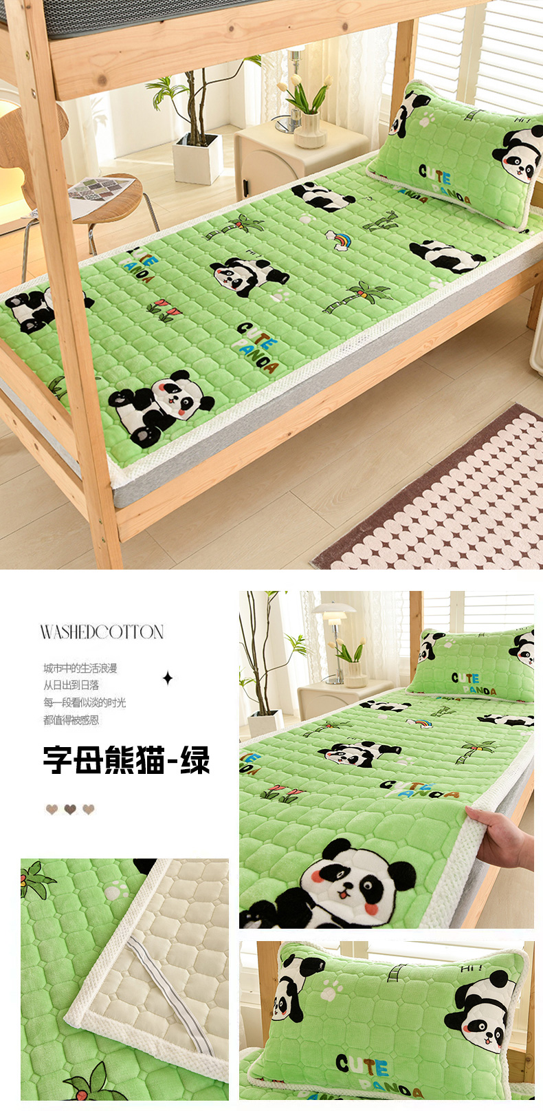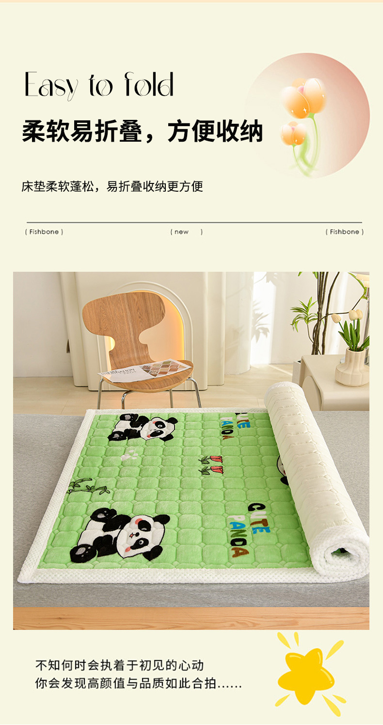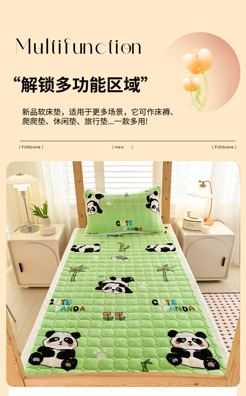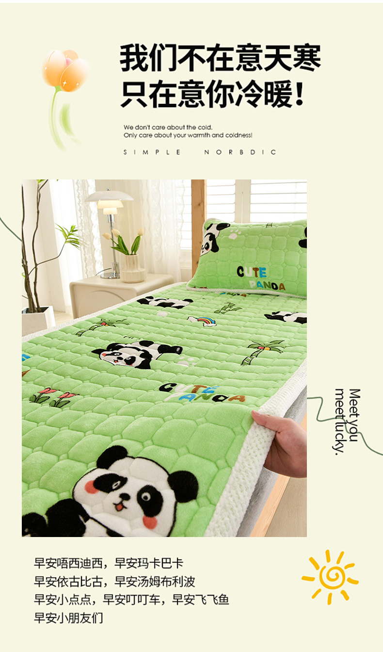 当前位置: 91家纺网 > 商品网购 > 床垫/床褥 > 普通床垫 > 牵依 2025新款牛奶绒印花床垫学生床褥 字母熊猫-绿