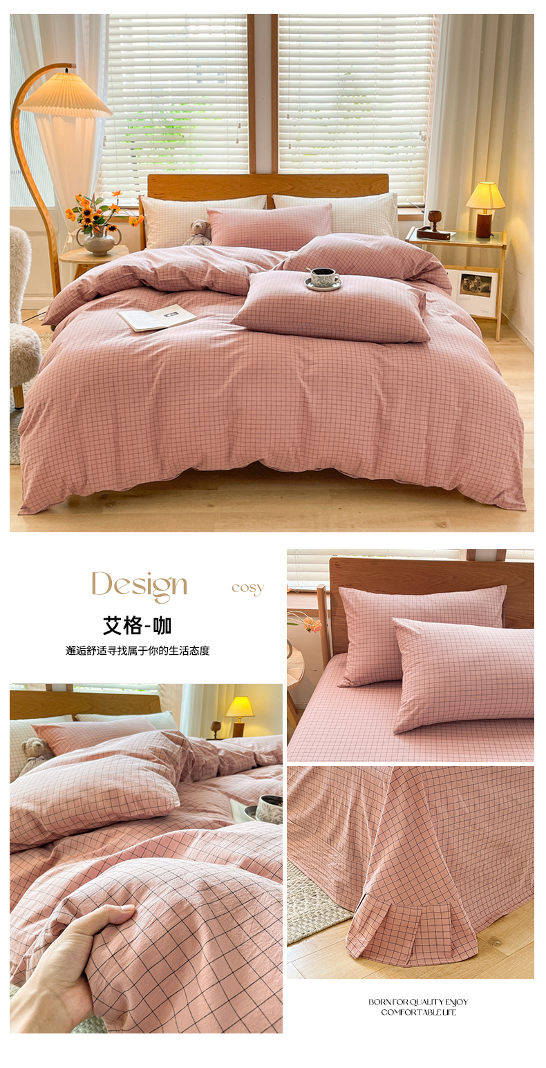 当前位置: 91家纺网 > 商品网购 > 床品套件 > 四件套 > 全棉普通四件套 > 棉小二 2024新款直播爆款日系简约风全棉色织水洗棉四件套纯棉四件套全棉四件套 艾格-咖