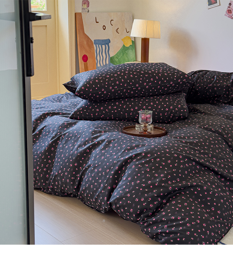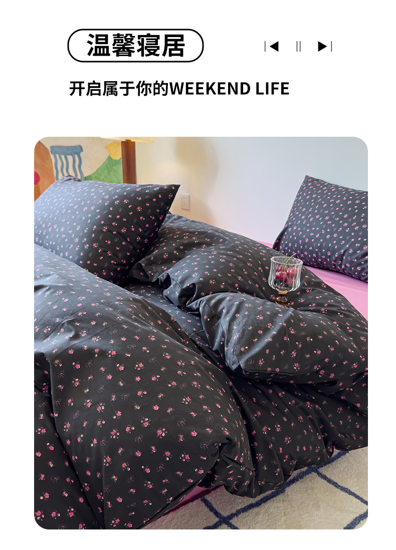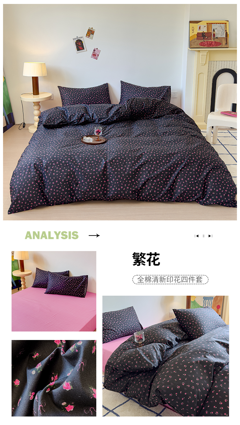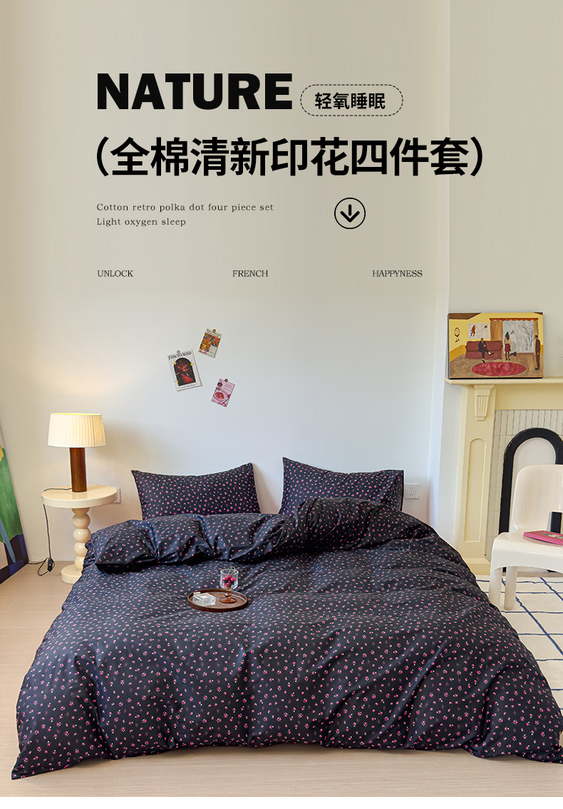 (总)感遇家纺 2025新款小清新甜系全棉四件套,百丽兔,波点小女孩,点点小狗,复古樱桃,格子草莓,格子樱桃,花间牧歌,灰条猫咪,奶绿,宁夏,森林小熊猫,甜心波点