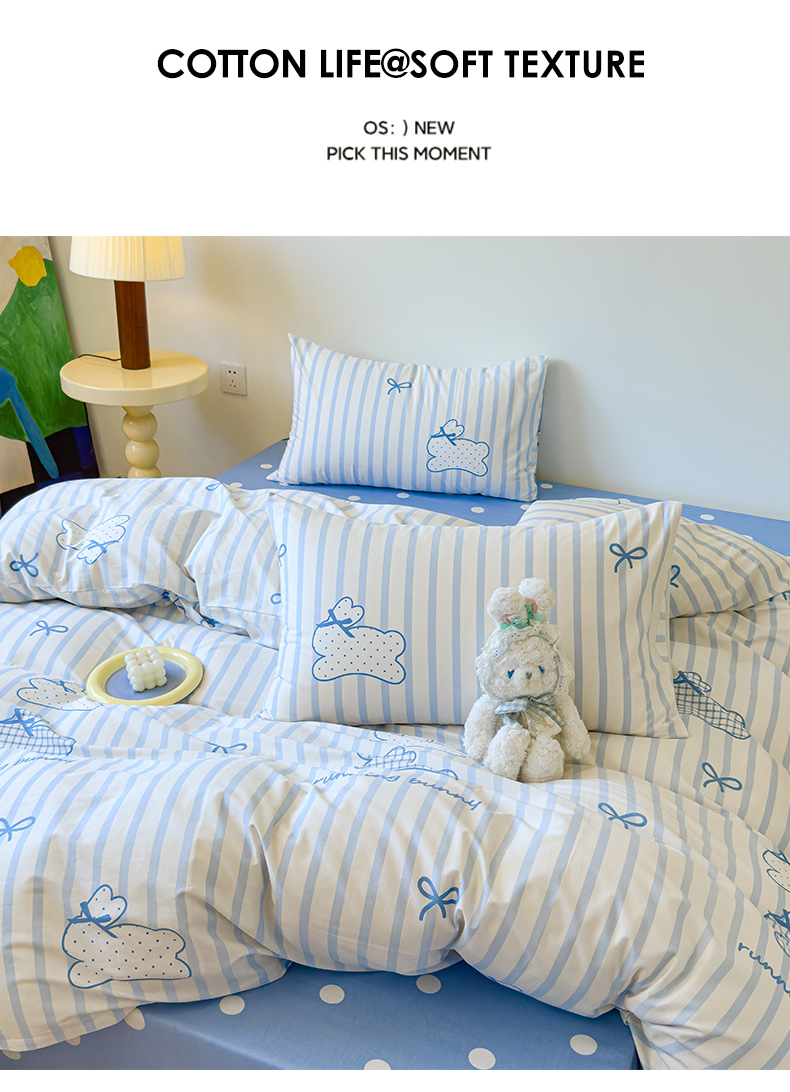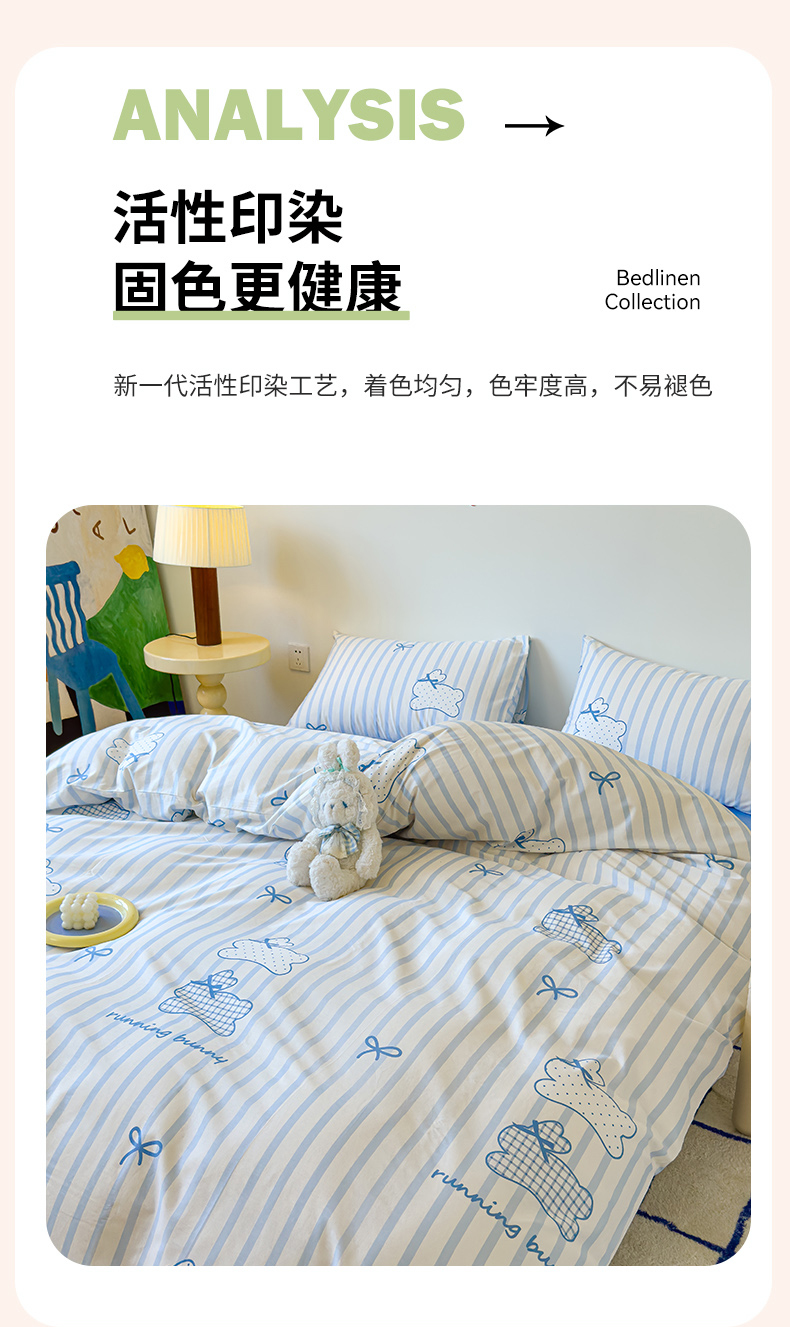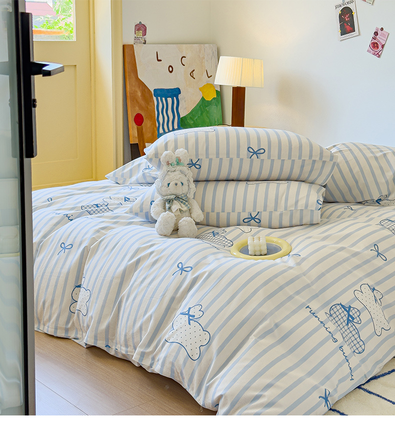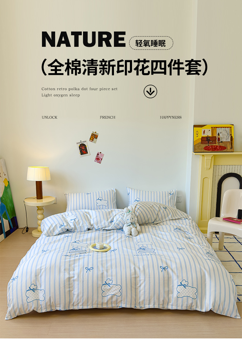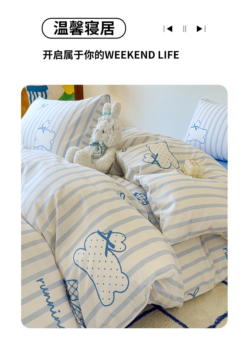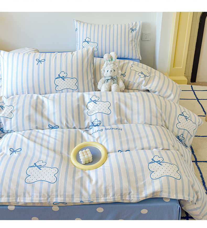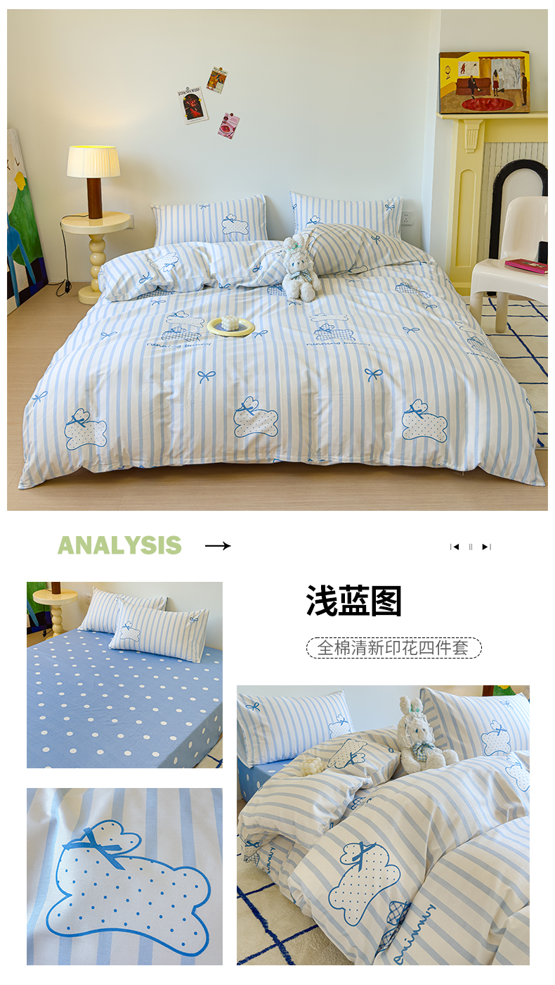 感遇家纺 2024新款全棉印花四件套 浅蓝兔