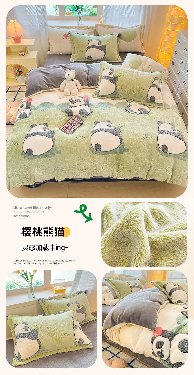 当前位置: 91家纺网 > 商品网购 > 床品套件 > 四件套 > 牛奶绒四件套 > 同田家纺 2024秋冬新品雪花绒牛奶绒印花四件套 樱桃熊猫