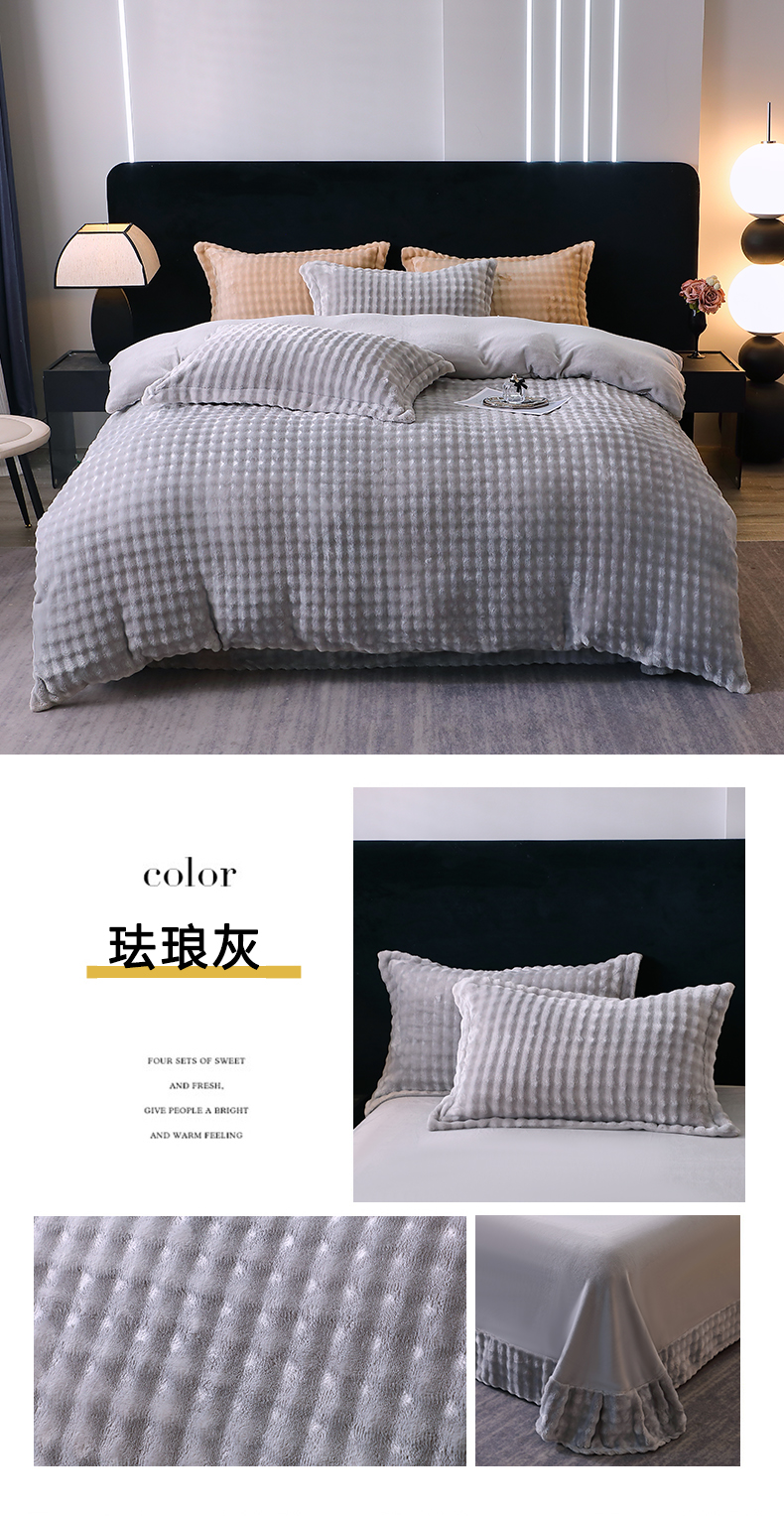 商品名称:席之家 2024新款加厚兔毛牛奶绒四件套 珐琅灰