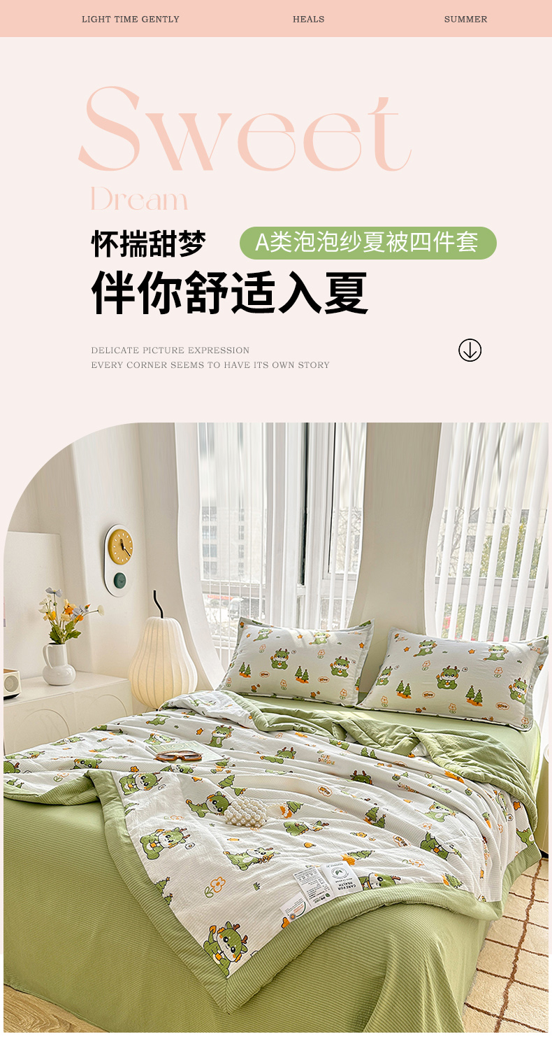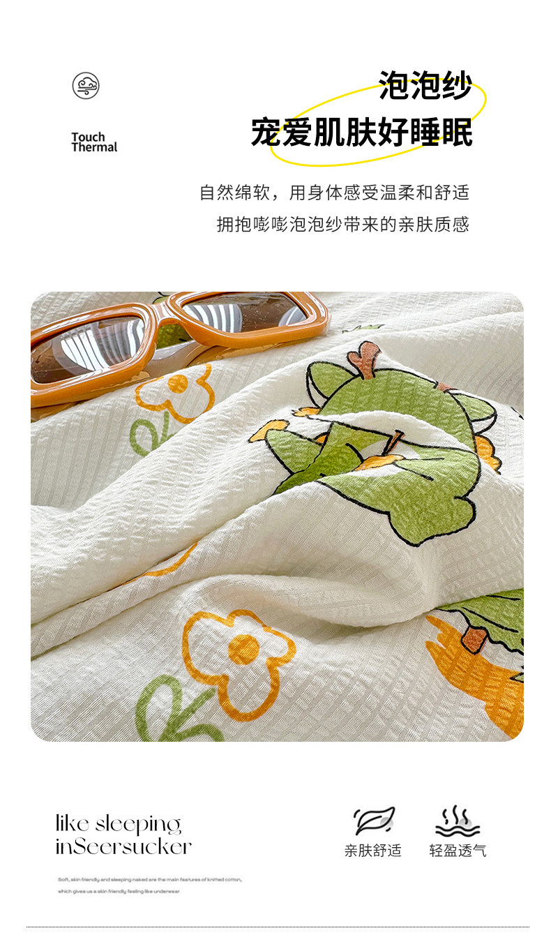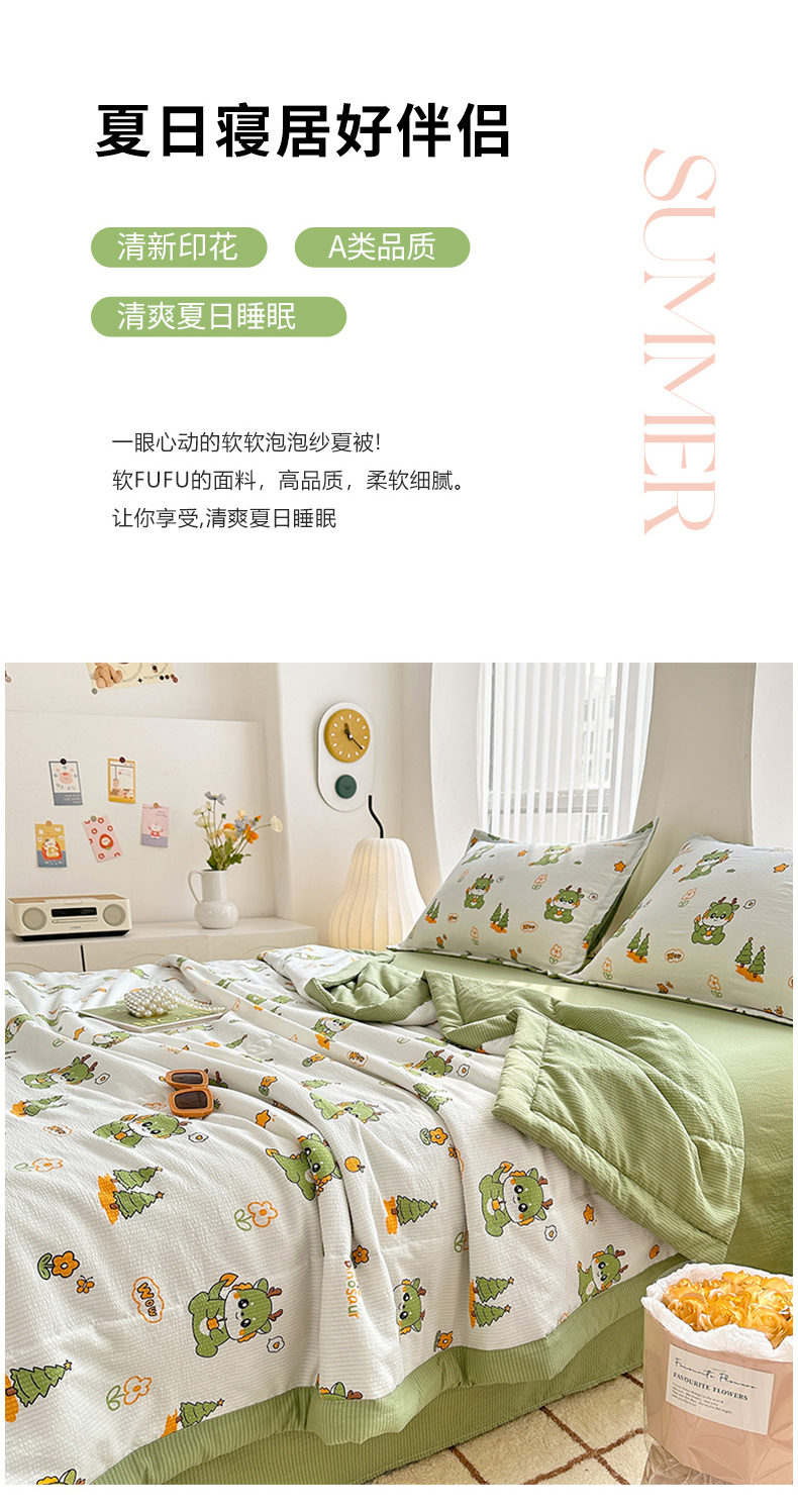 当前位置: 91家纺网 > 商品网购 > 床品套件 > 四件套 > 夏被四件套 > 81号家纺 2024新款1泡泡纱印花夏被四件套 小恐龙