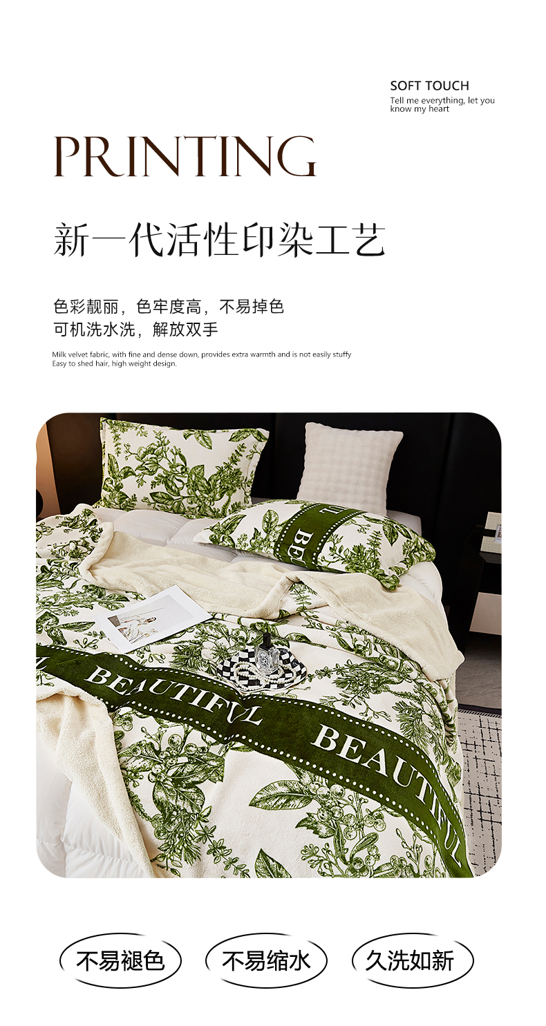 商品名称:坦客 2025新款欧棉绒北极绒毯浪漫花语 绿