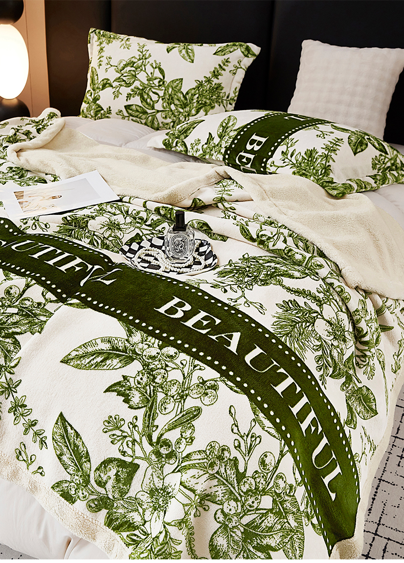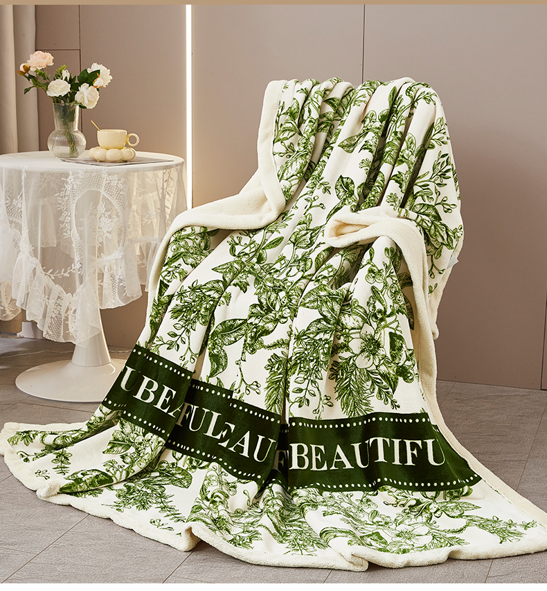 坦客 2025新款欧棉绒北极绒毯浪漫花语 绿