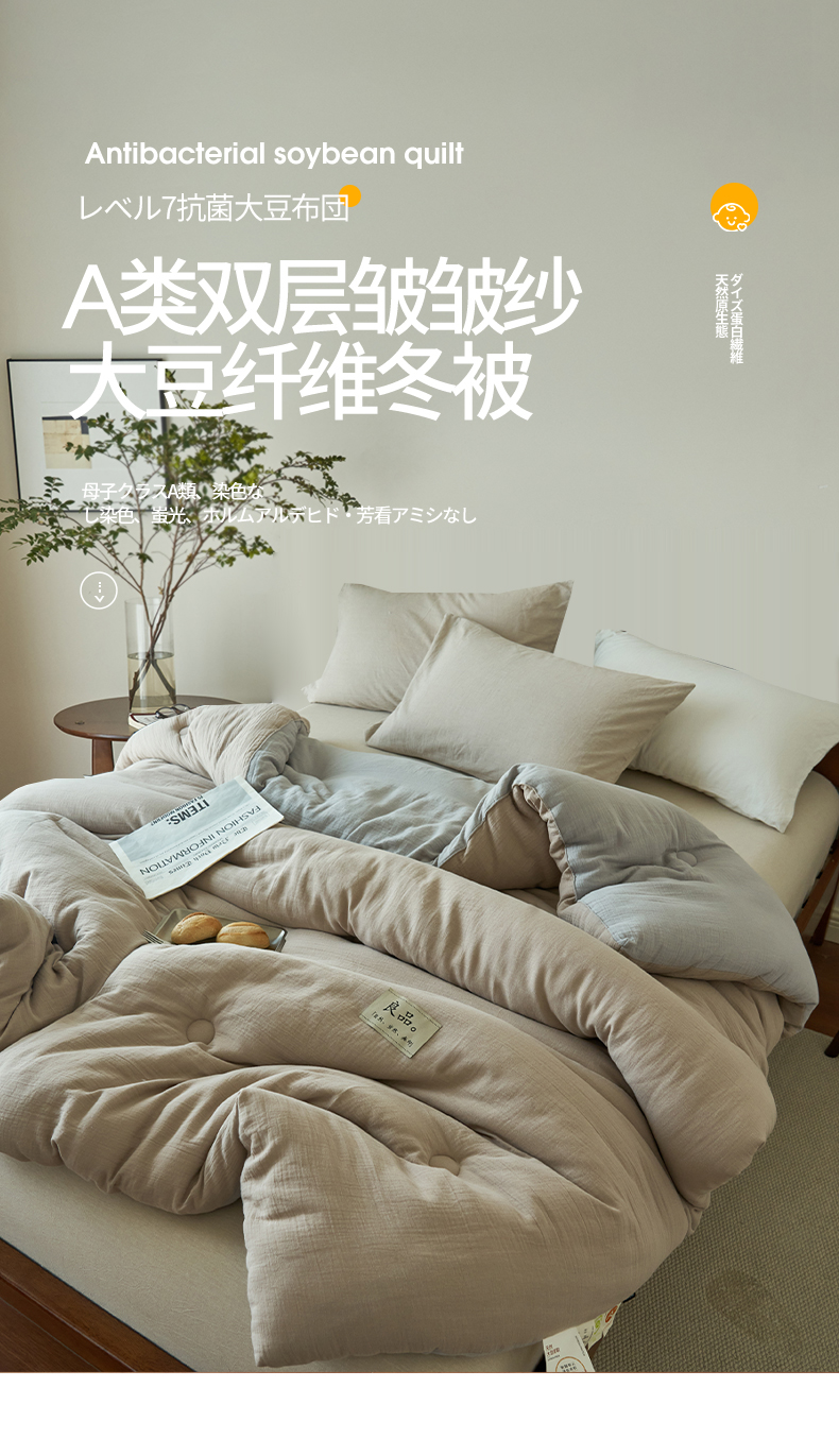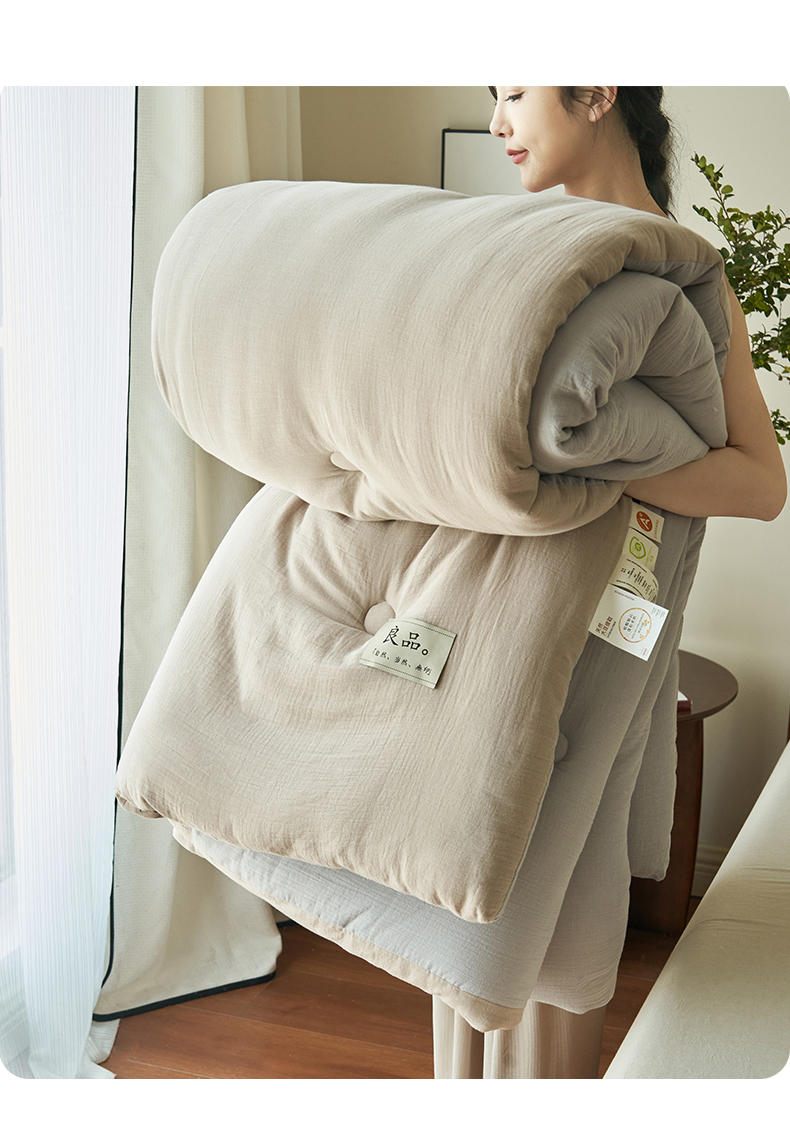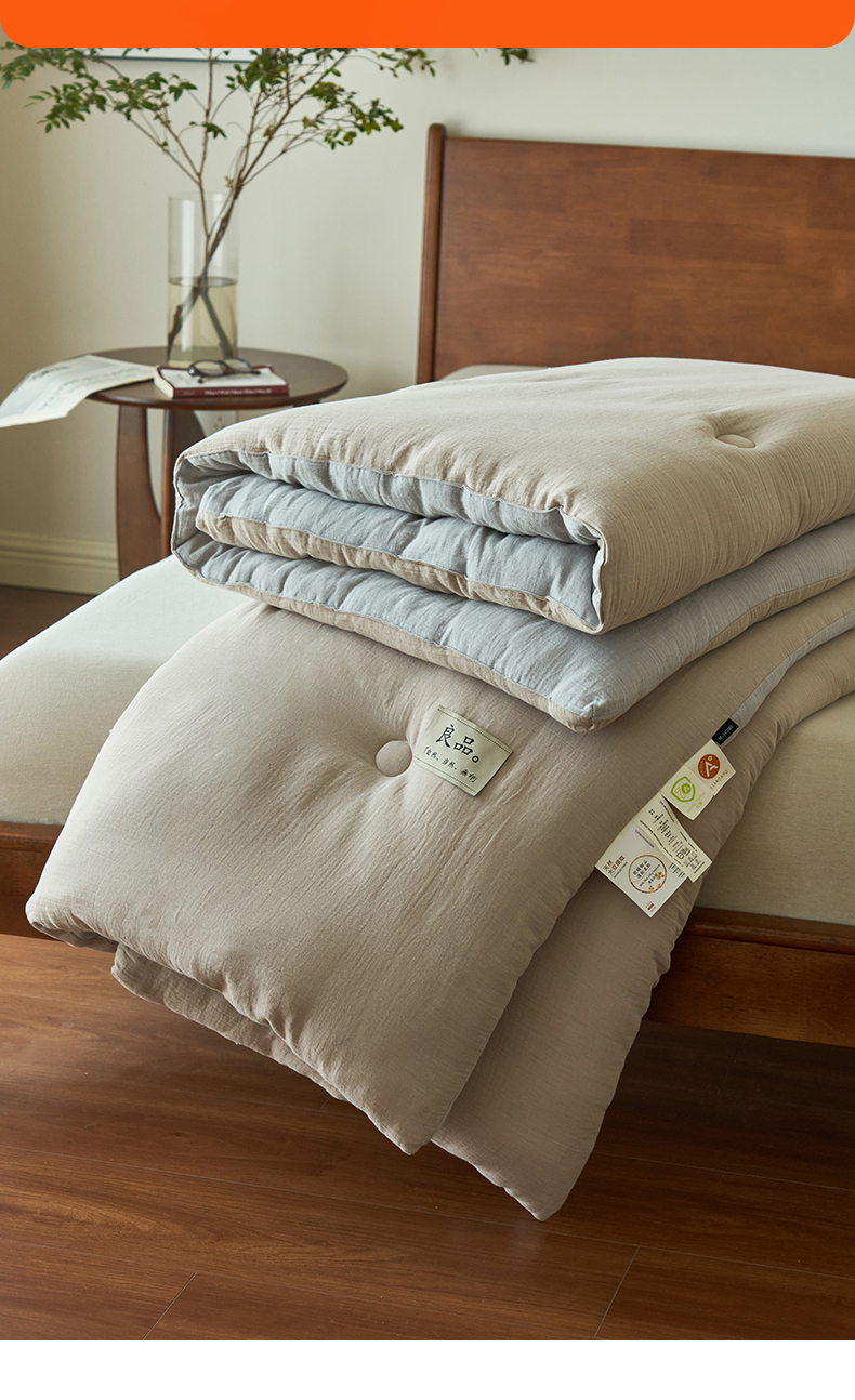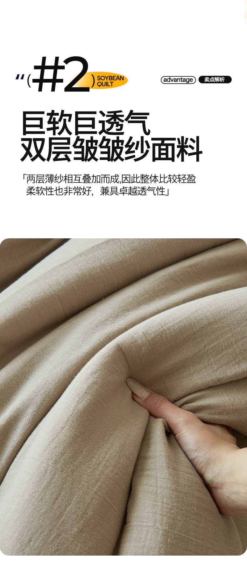 • 91家纺网 家纺一手货源 找家纺 子由 2024新款双层皱皱纱大豆纤维冬被被子被芯 双层纱-驼+灰