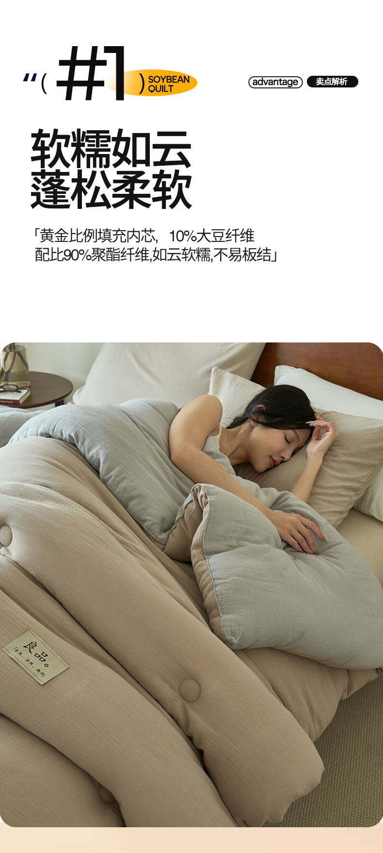 (总)子由家居 2025新款良品格大豆子母冬被被子被芯,子母被-白+灰,子母被-白+绿,子母被-白+杏,子母被-灰+驼