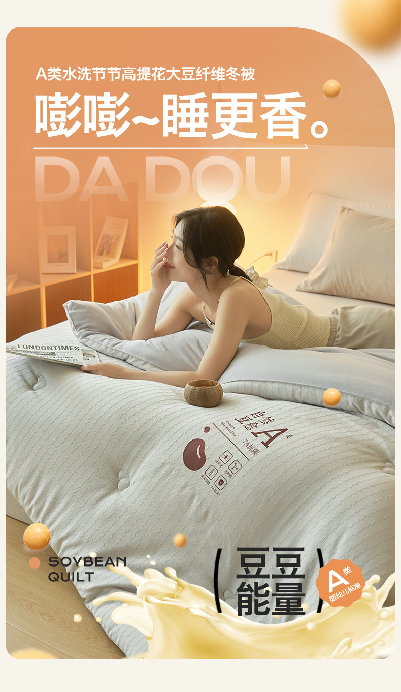 (总)子由家居 2025新款良品格大豆子母冬被被子被芯,子母被-白+灰,子母被-白+绿,子母被-白+杏,子母被-灰+驼