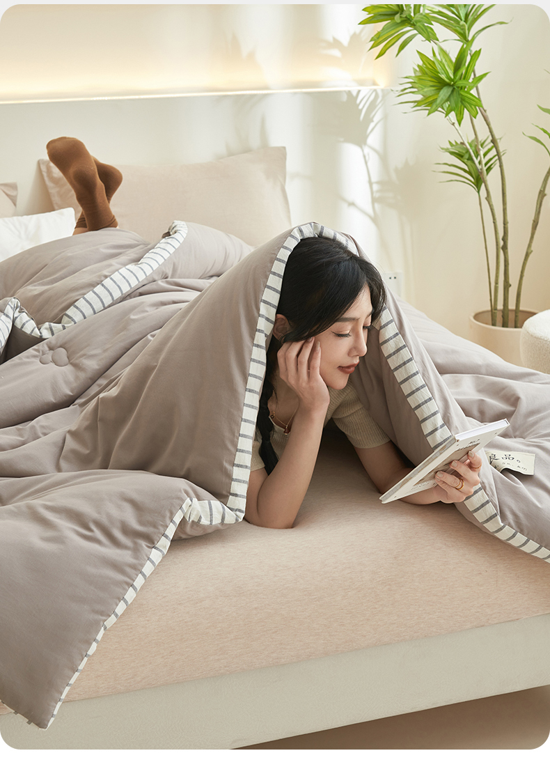 • 91家纺网 家纺一手货源 找家纺 2024新款b类简约条纹立体大豆纤维冬被被子被芯 条纹立体-浅灰