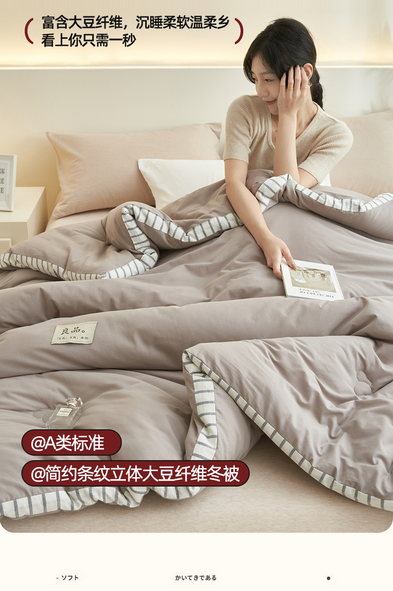 (总)子由家居 2025新款针织良品格拼色大豆纤维冬被被子被芯,良品格-白+灰,良品格-白+绿,良品格-白+杏,良品格-灰+驼